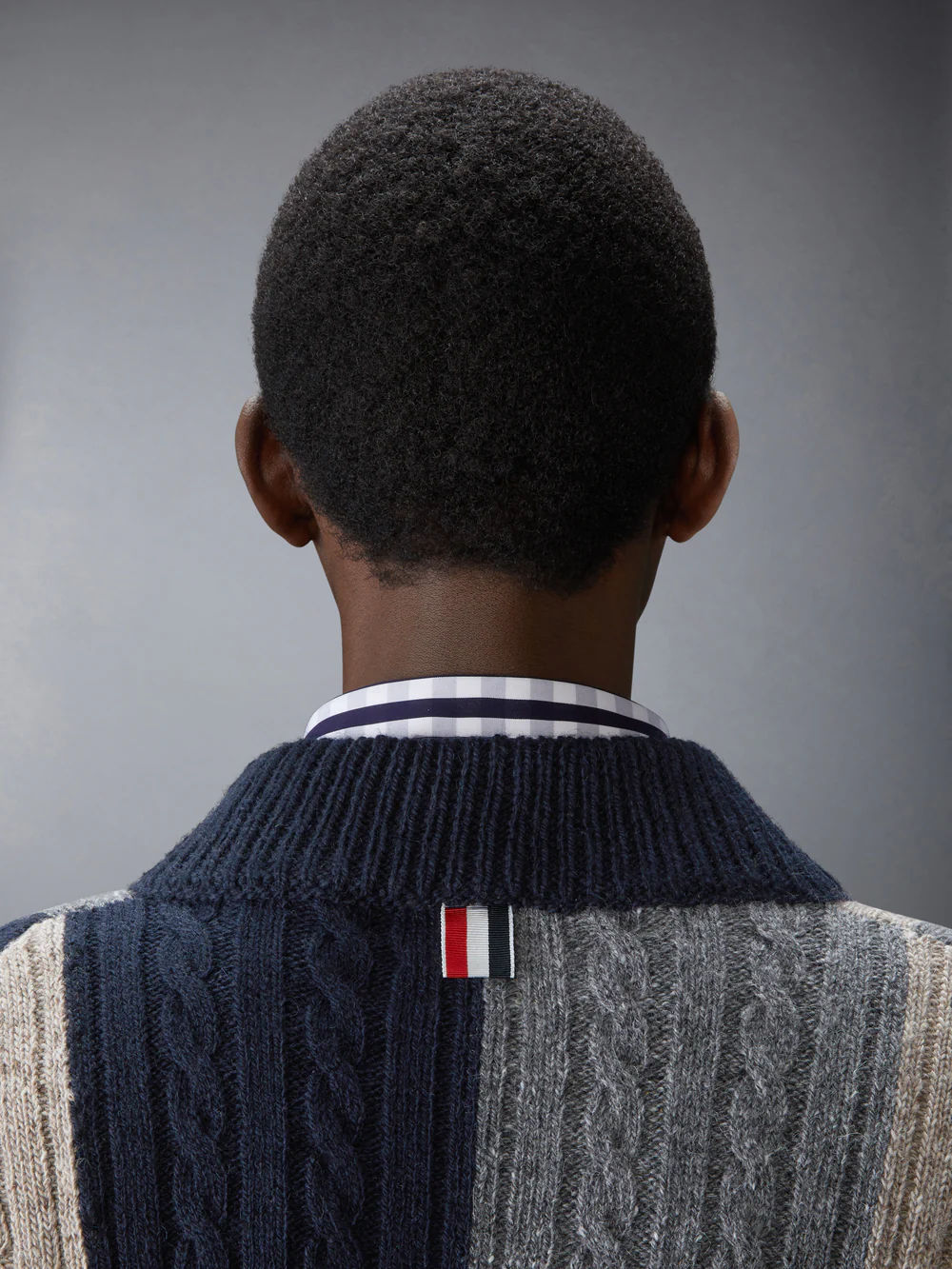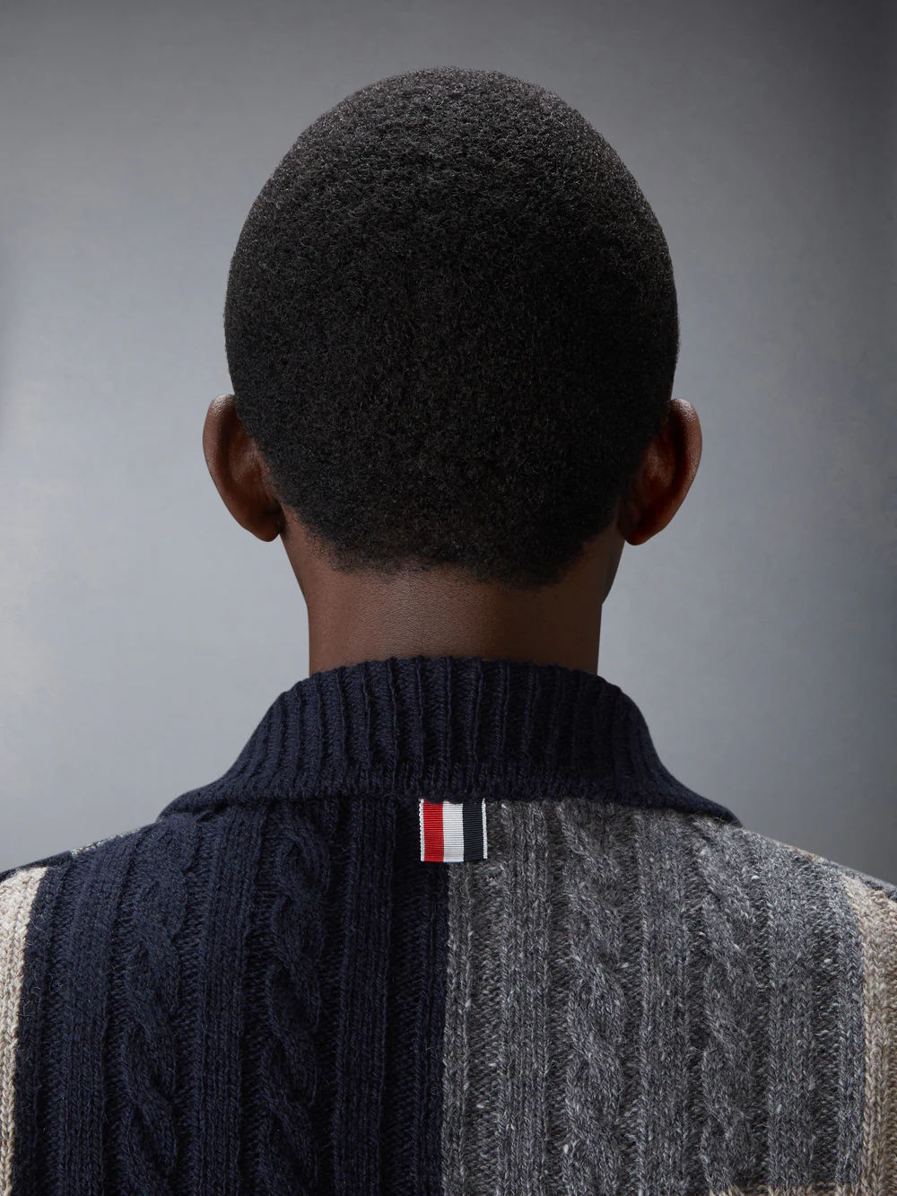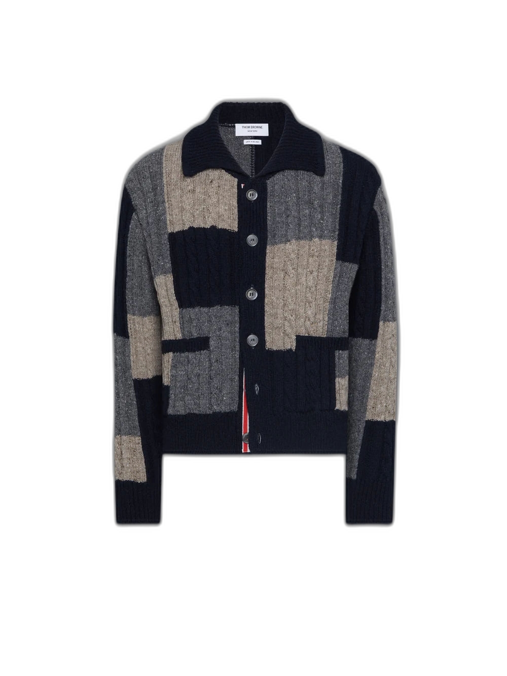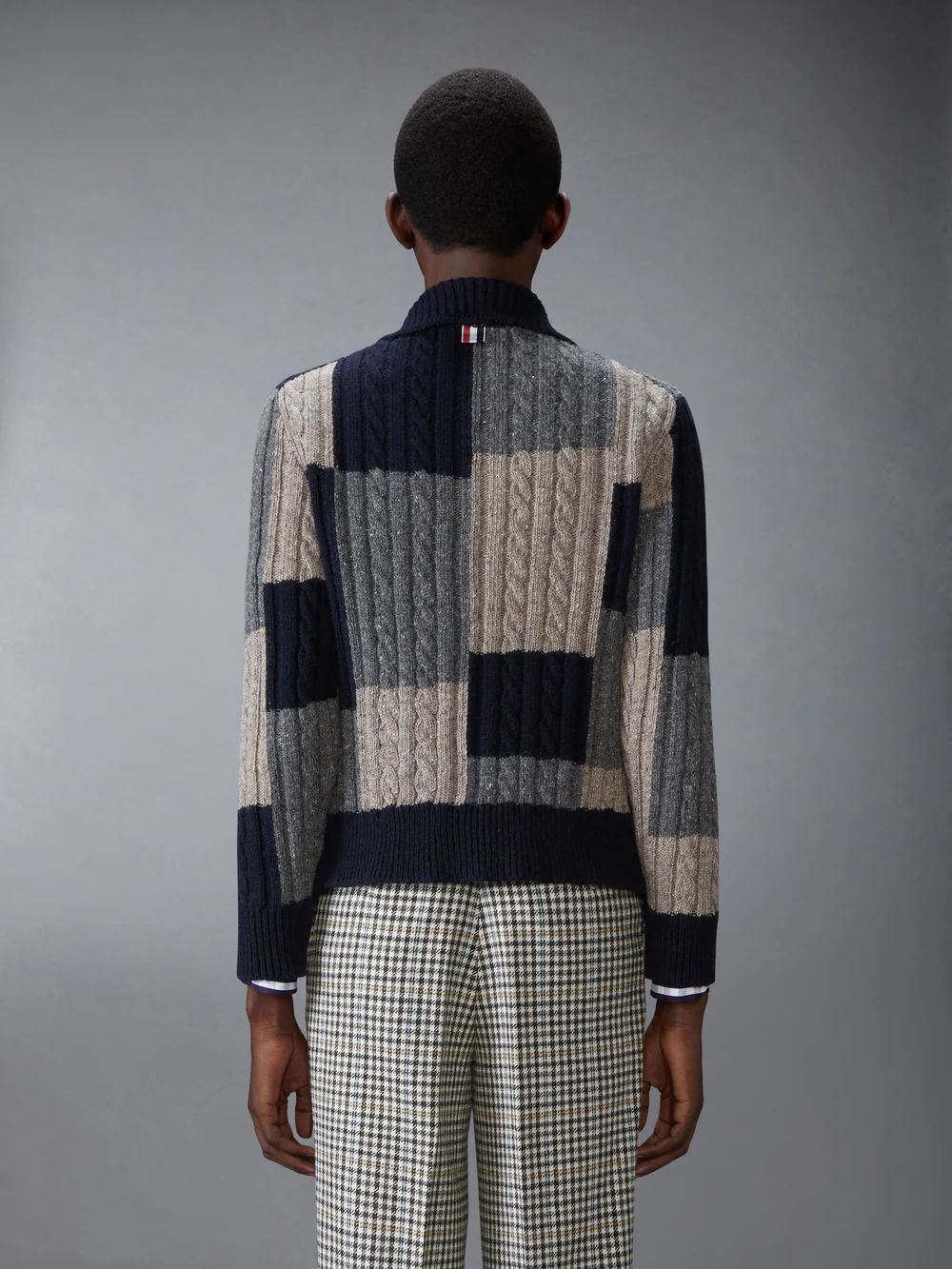 도니골 패치워크 인타르시아 모크넥 카디건