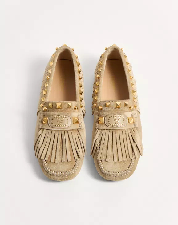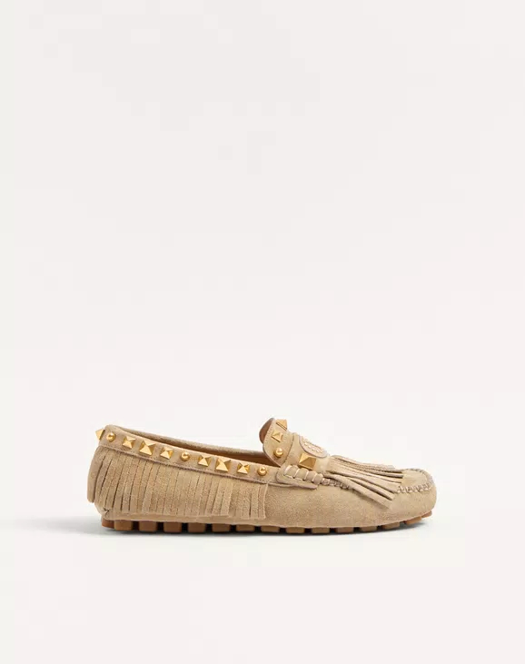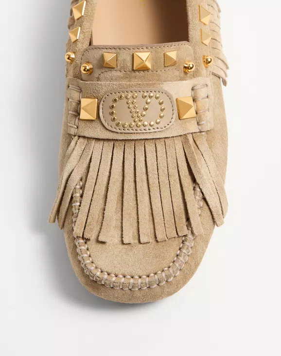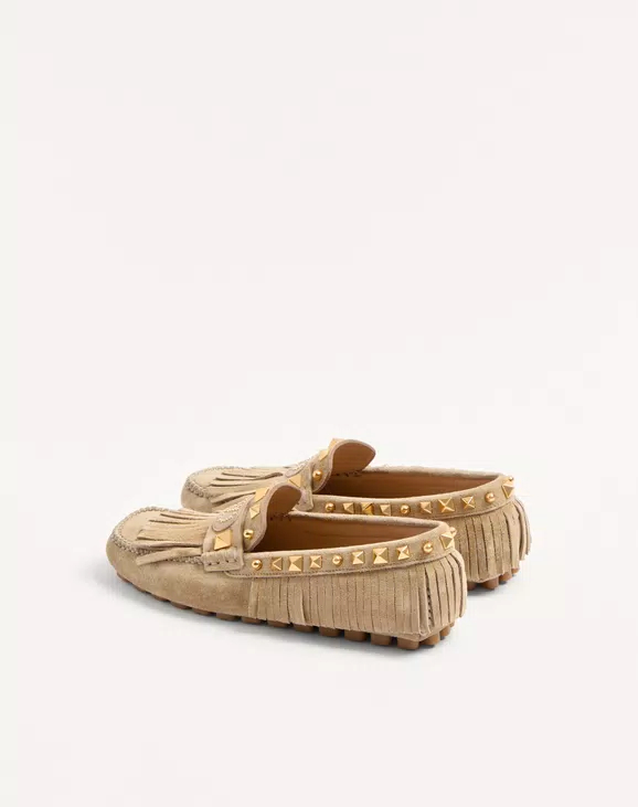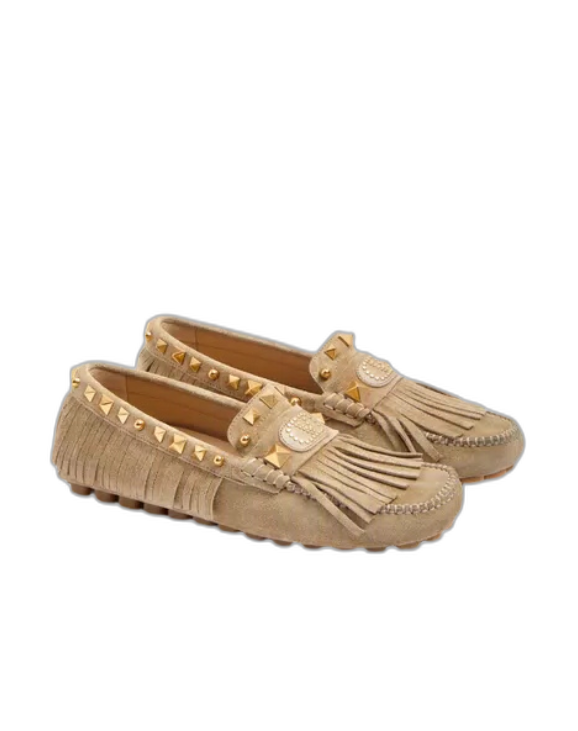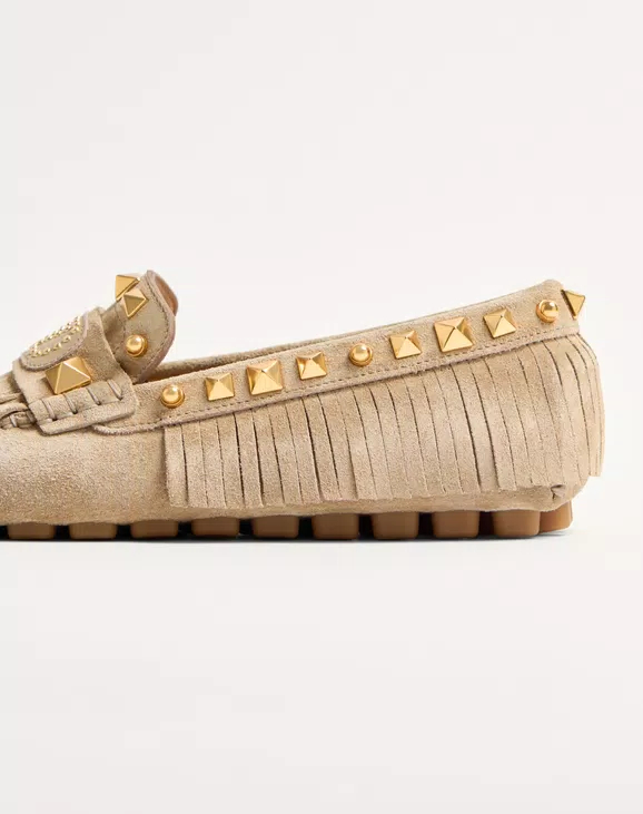 • 프린지 장식 스웨이드 소재 플래스터 캐스터 드라이버 로퍼