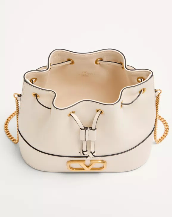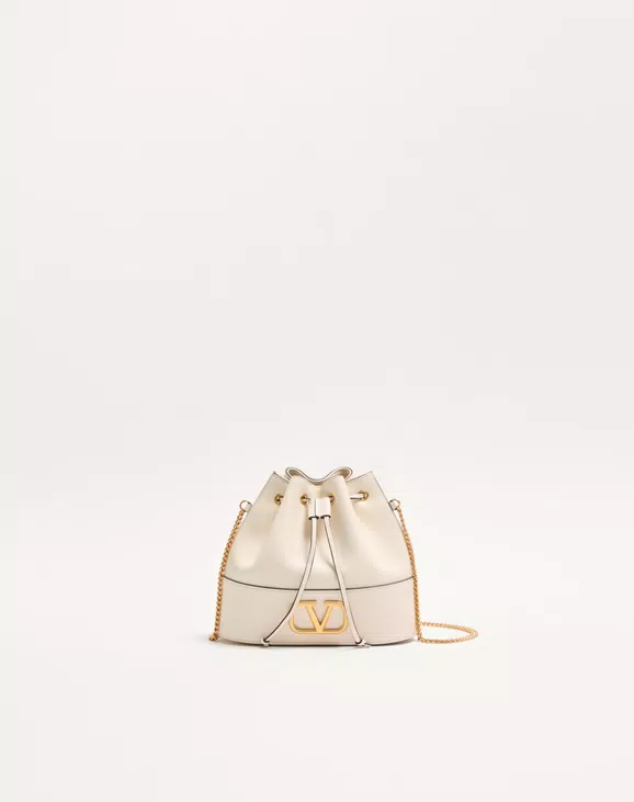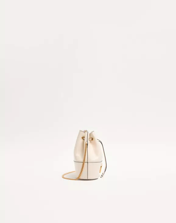 나파 가죽 브이로고 시그니처 체인 미니 버킷백 화이트