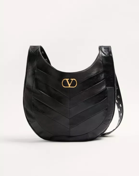 발렌티노 가라바니 호보호 스터드 디테일 쉐브론 패턴 나파 레더 스몰 호보백