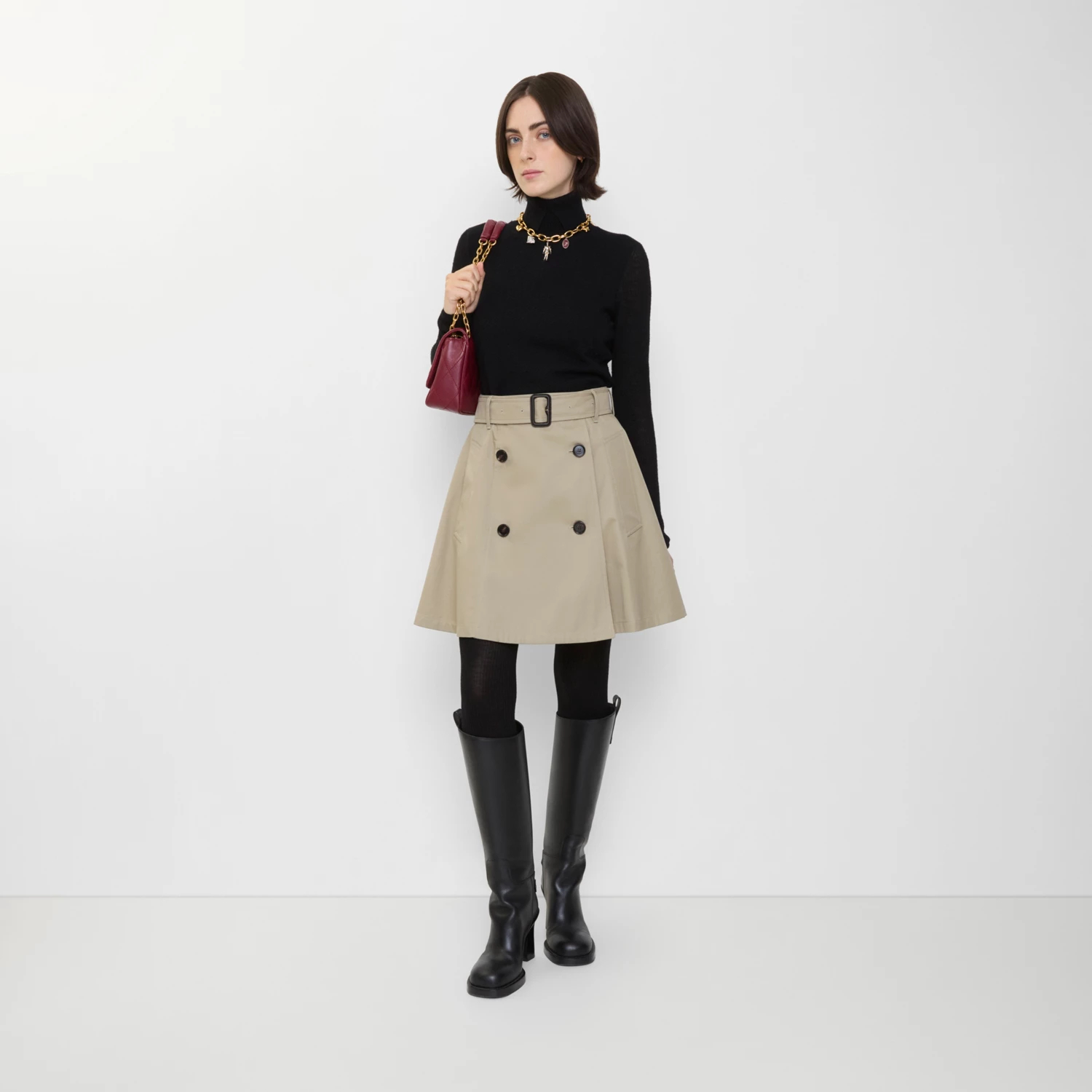 개버딘 트렌치 미니 스커트 > 여성의류