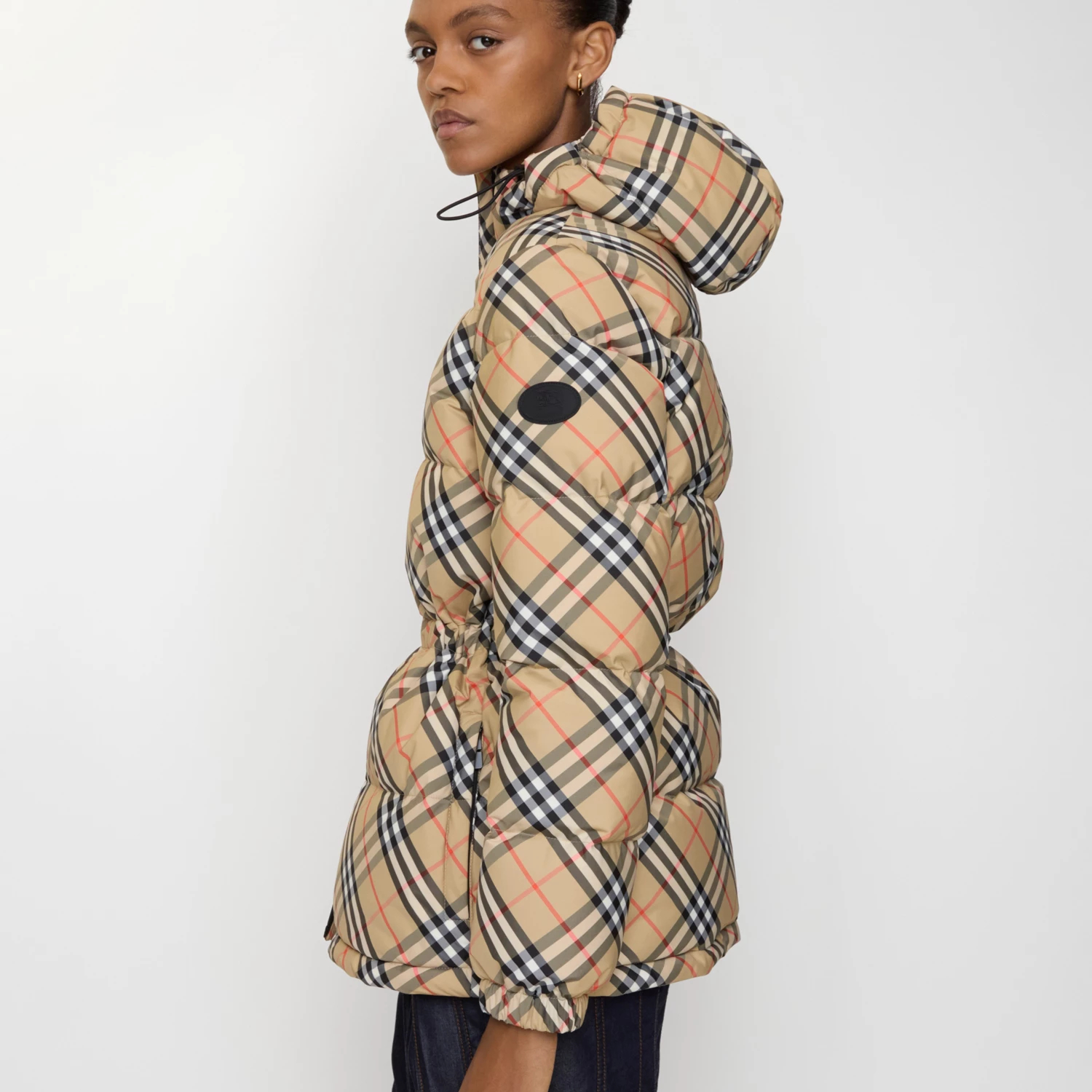 체크 나일론 후드 퍼퍼 재킷 > 여성의류
