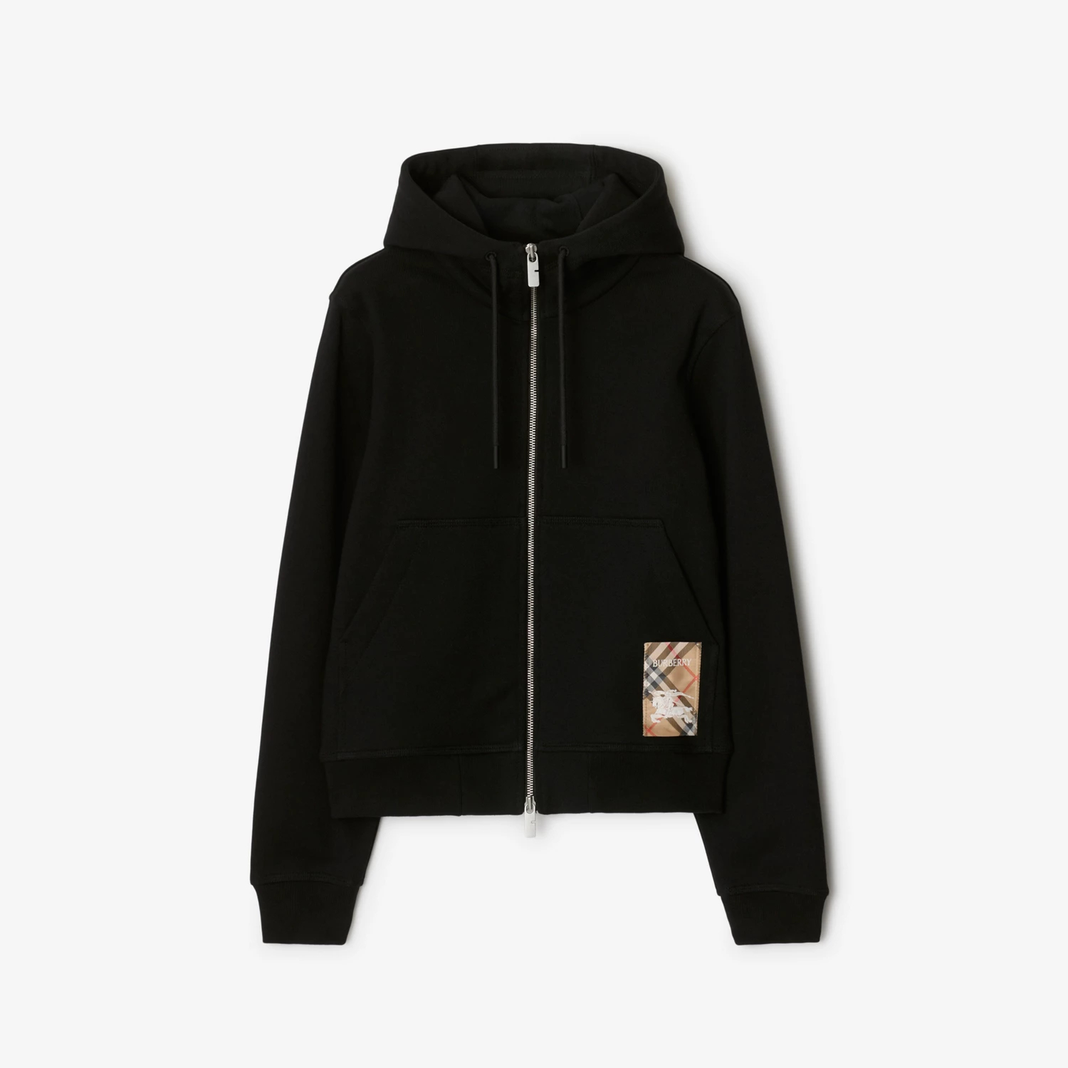 • 체크 라벨 코튼 지퍼 후디