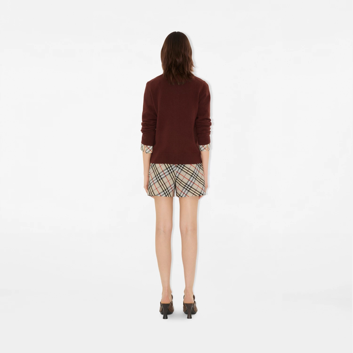 컨트라스트 체크 울 캐시미어 자카드 케이프