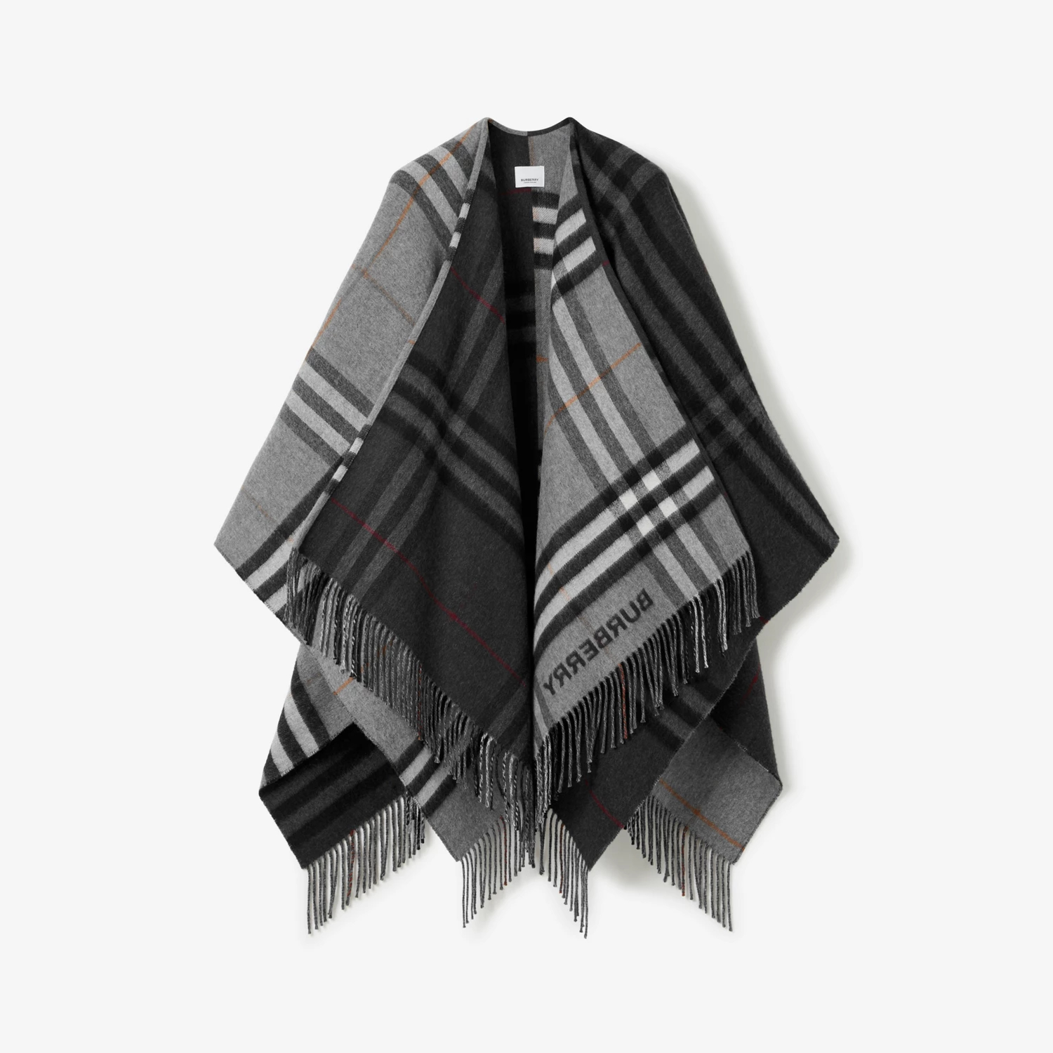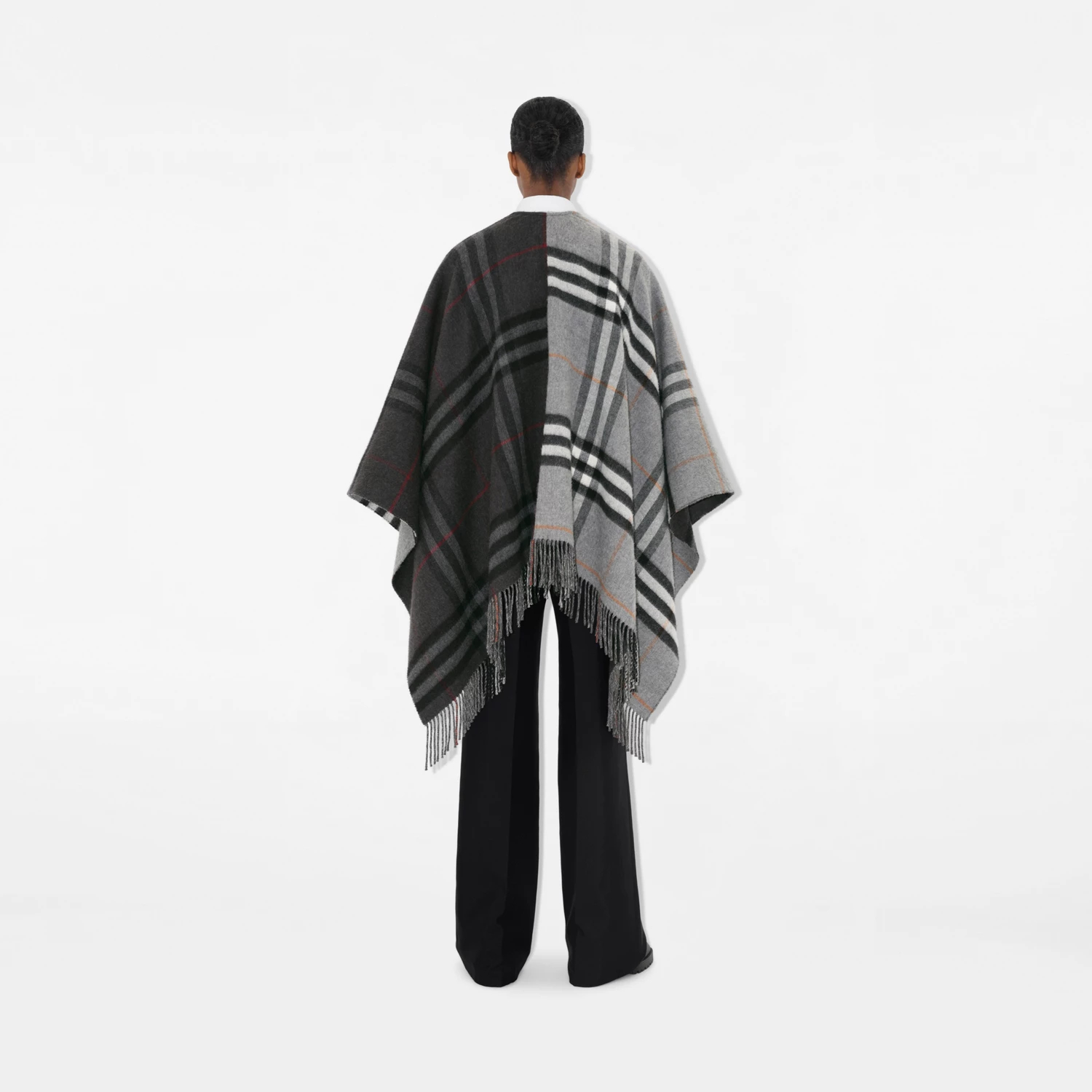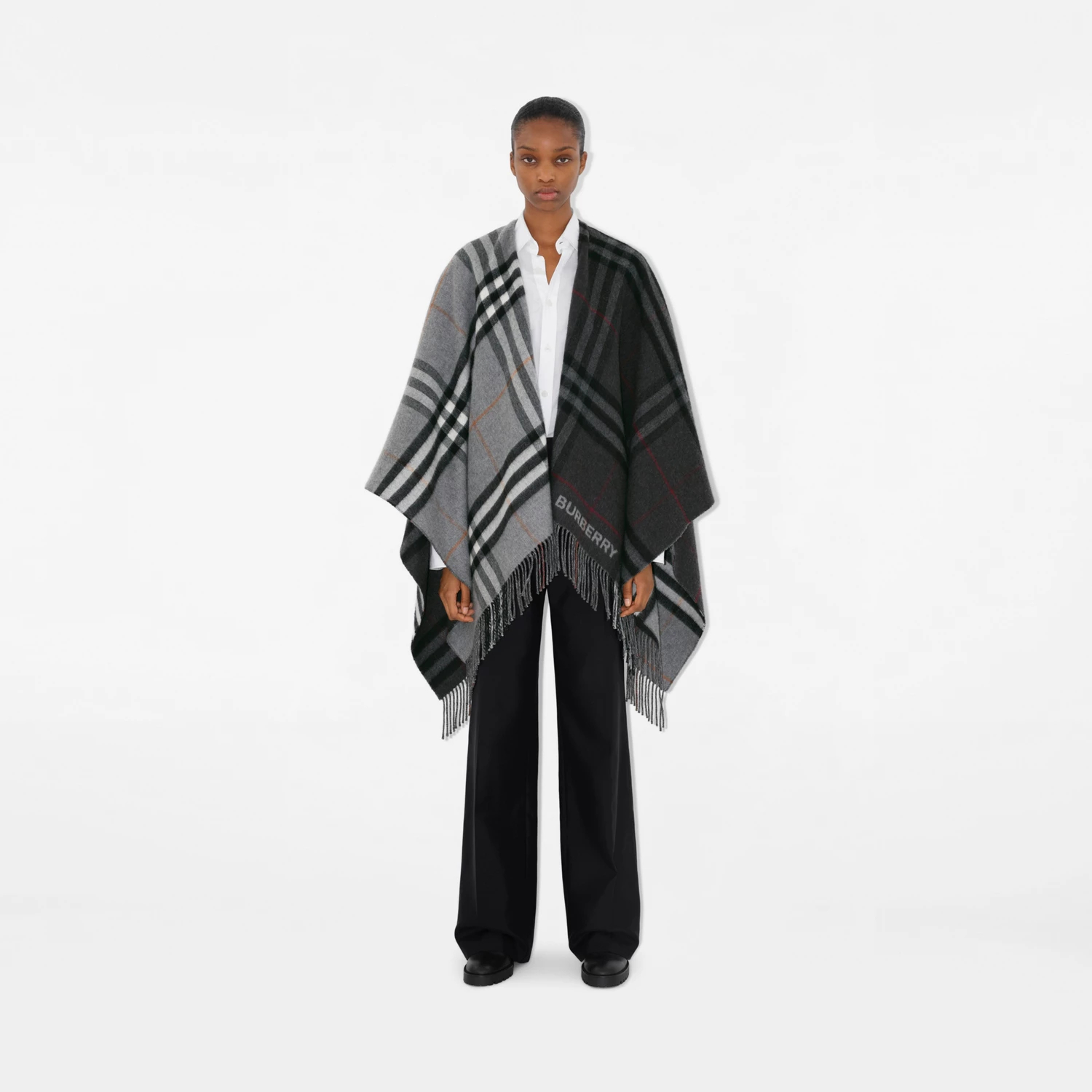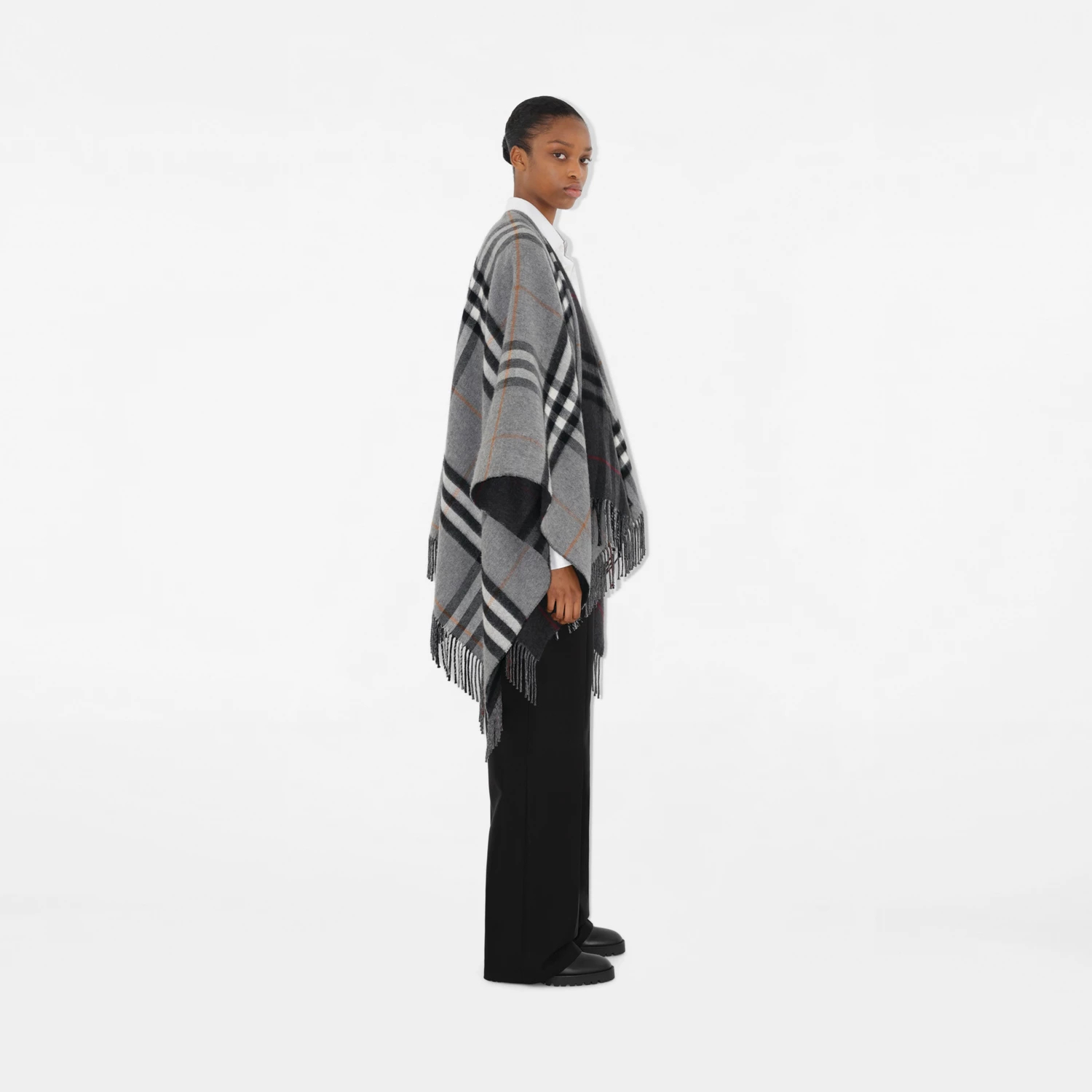 컨트라스트 체크 울 캐시미어 자카드 케이프 > 여성의류