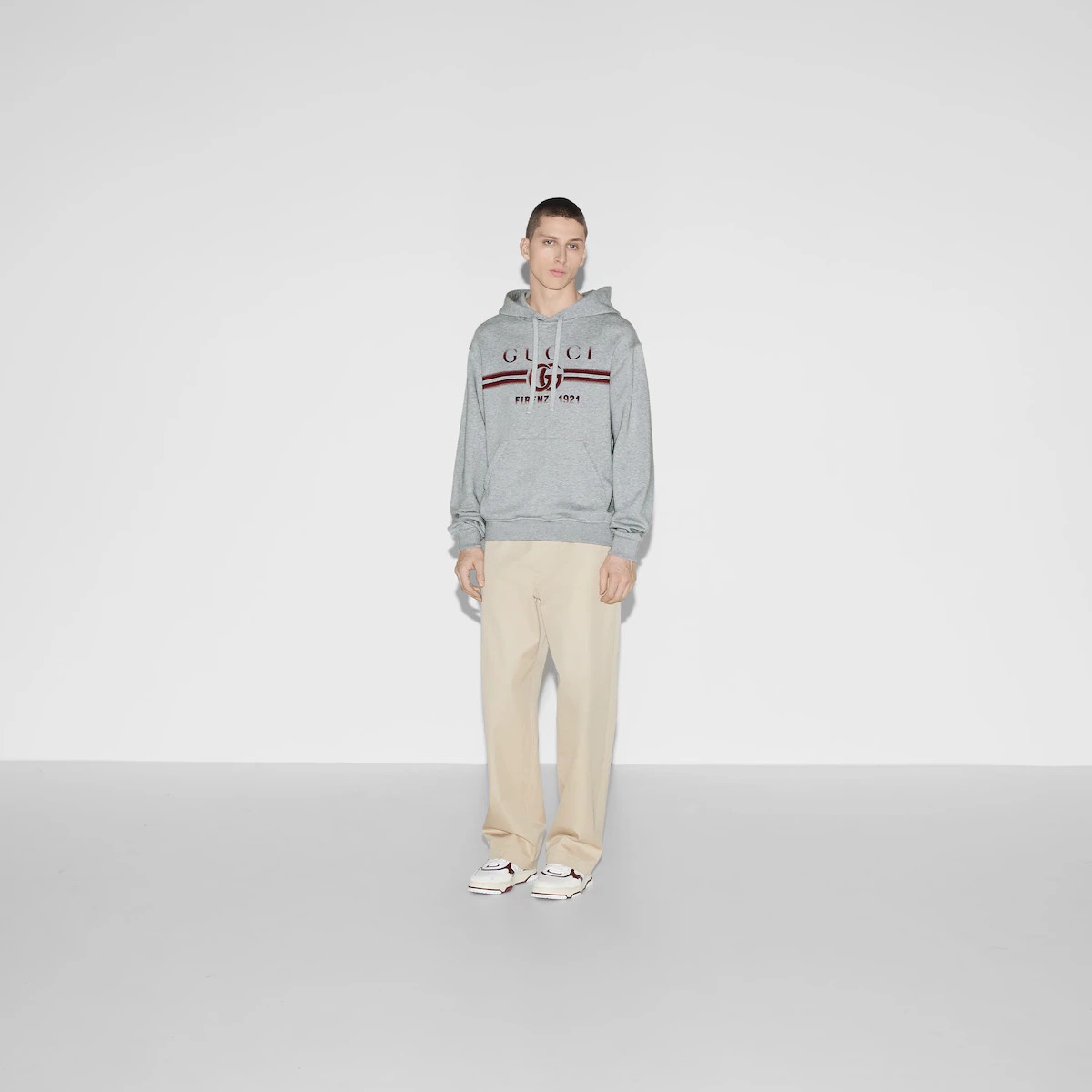 이탈리아 해변의 여름 감성과 비치 클럽의 영감을 표현하는 구찌 리도 컬렉션의 아이템입니다. 하우스의 상징적인 코드와 세련미 있는 패턴을 현대적인 방식으로 재해석한 프리폴 컬렉션을 만나보세요. 중앙에 바랜 듯한 구찌 더블 G 피렌체 1921 프린트를 더한 코튼 저지 소재의 여유로운 스웨트셔츠.