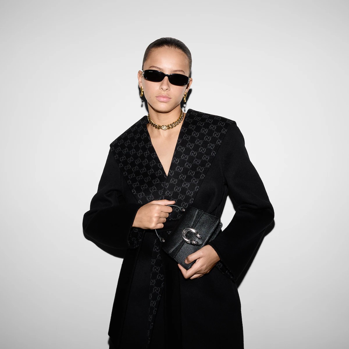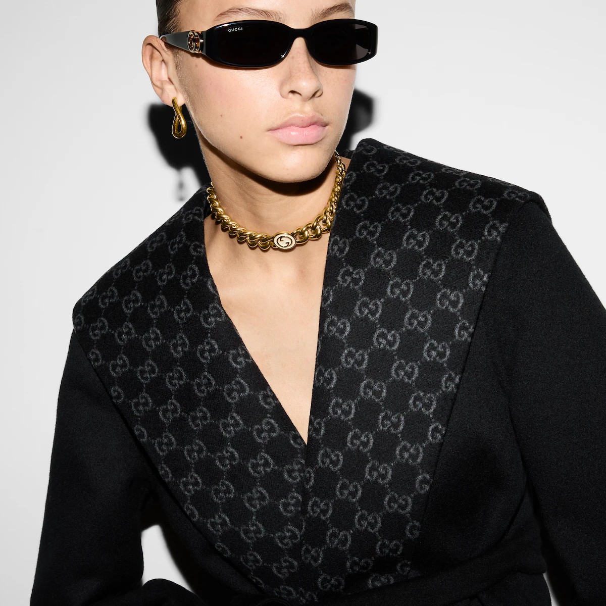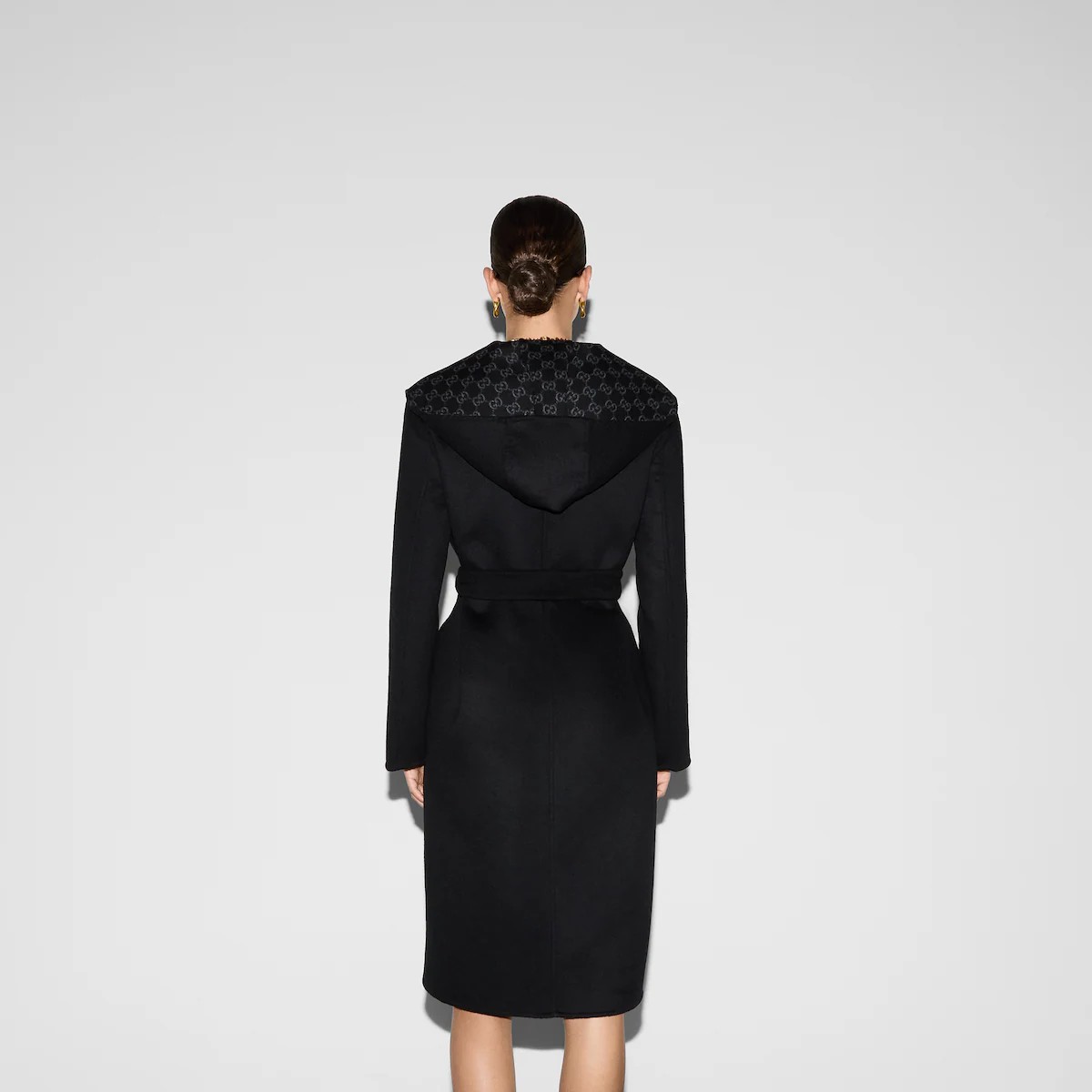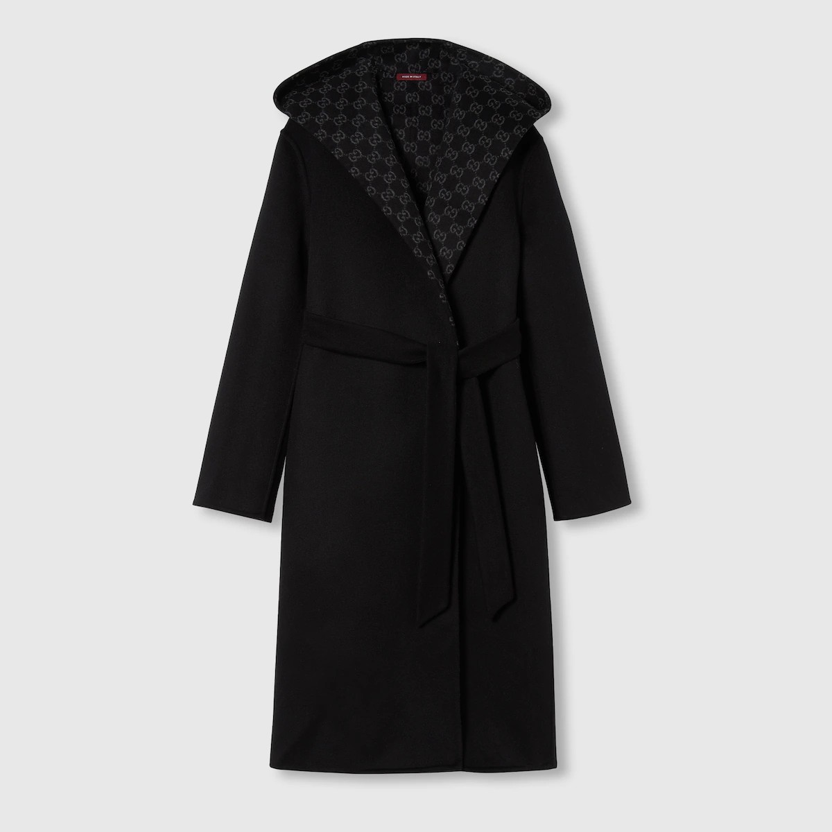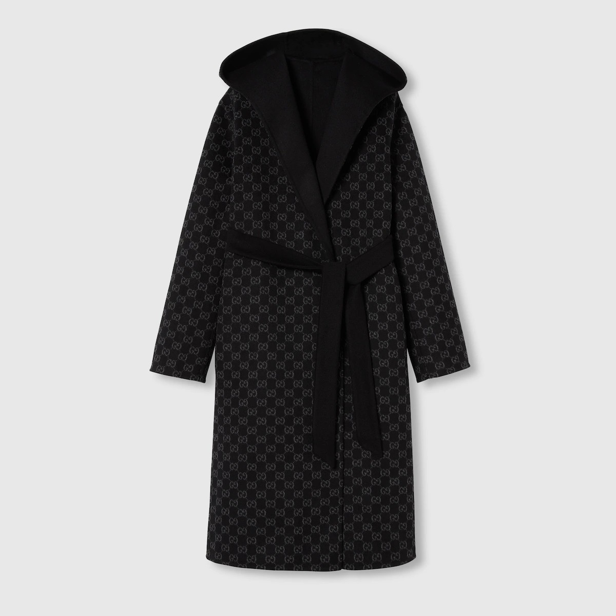 다가오는 쌀쌀한 계절을 위해 부드러운 질감과 보온성을 갖춘 고급 소재 채택 한쪽 면은 실크 울 블렌드, 반대쪽 면은 블랙/그레이 GG 실크 울 블렌드 소재를 사용한 리버서블 코트. 탈부착 가능한 리버서블 셀프 타이 벨트로 더욱 다양한 스타일 연출 가능.