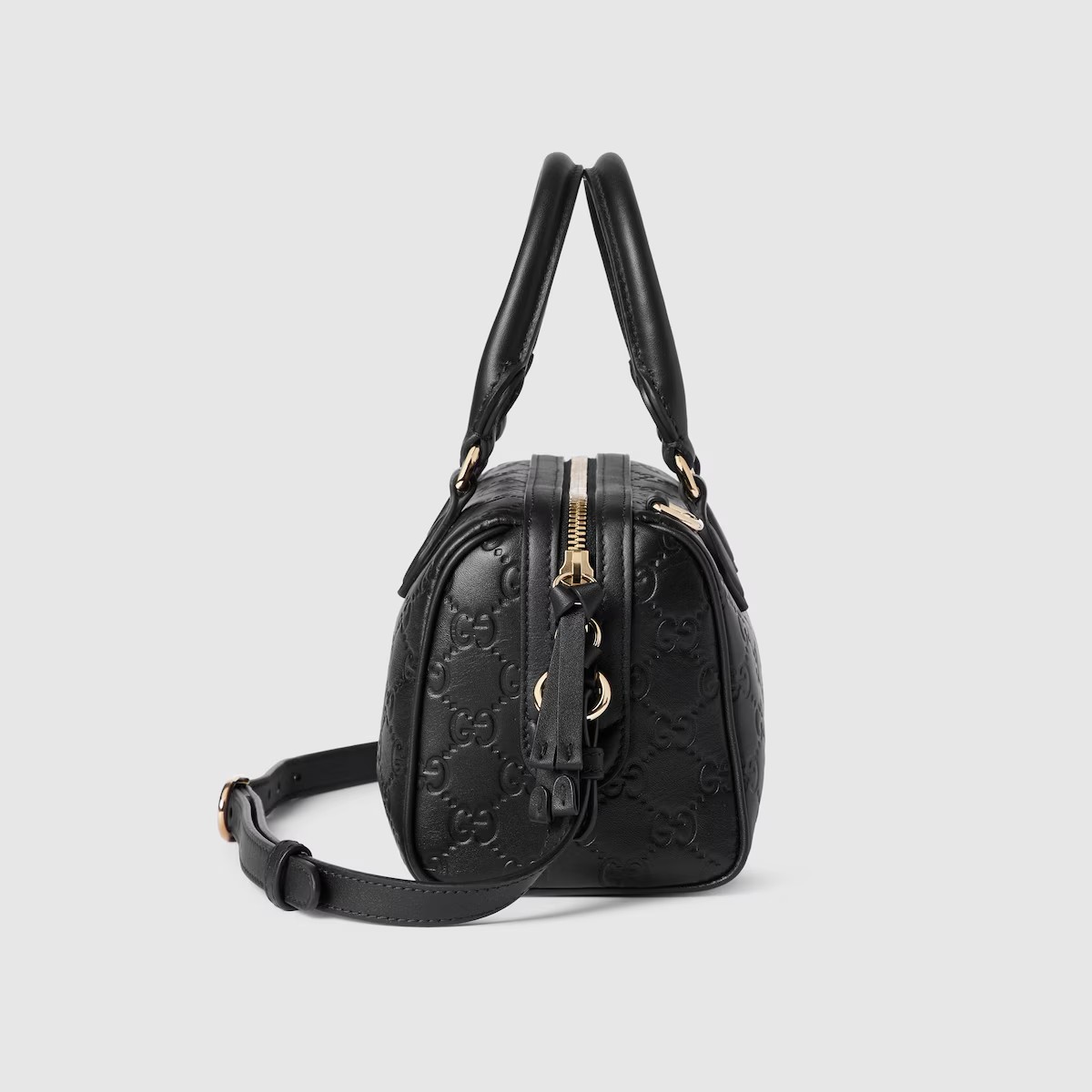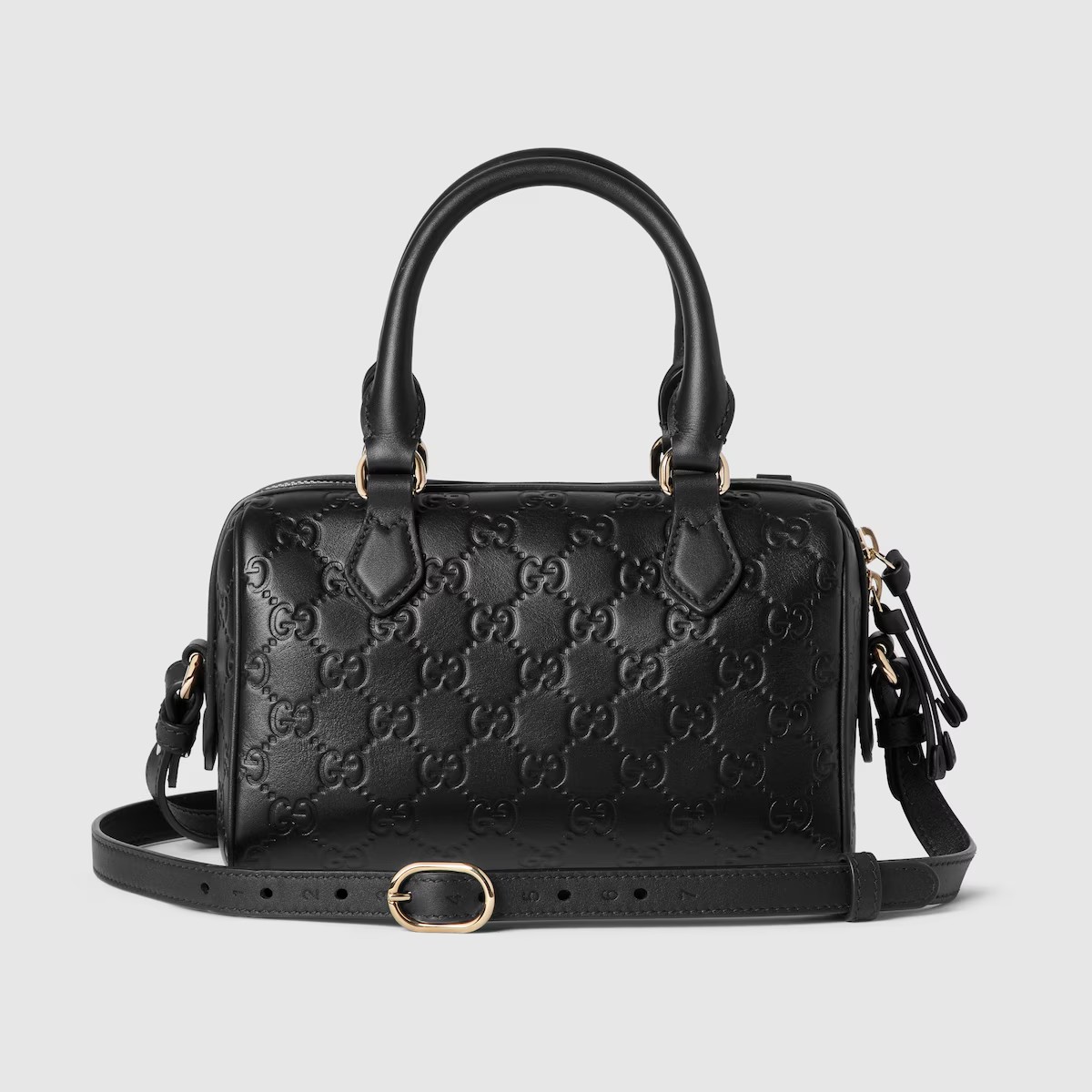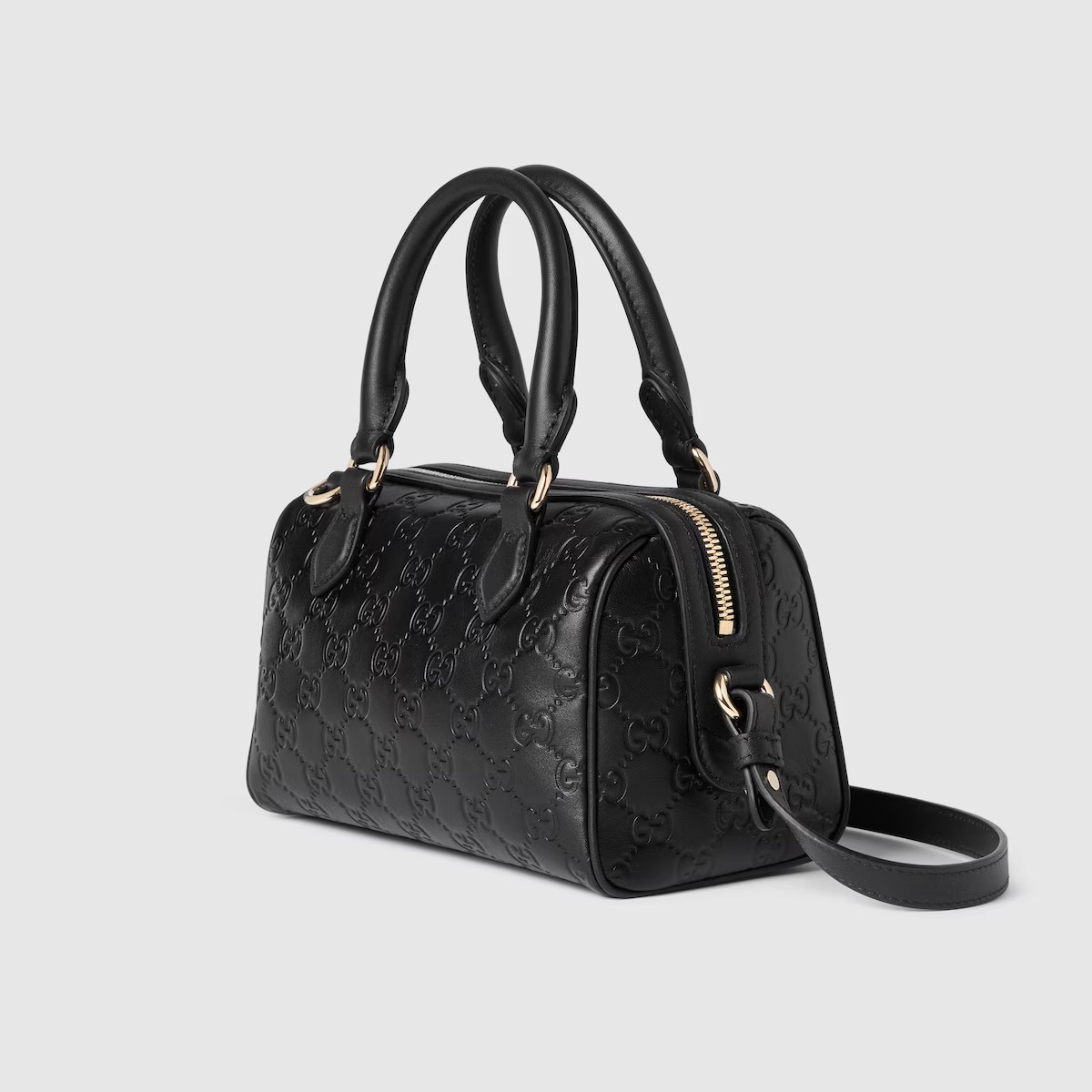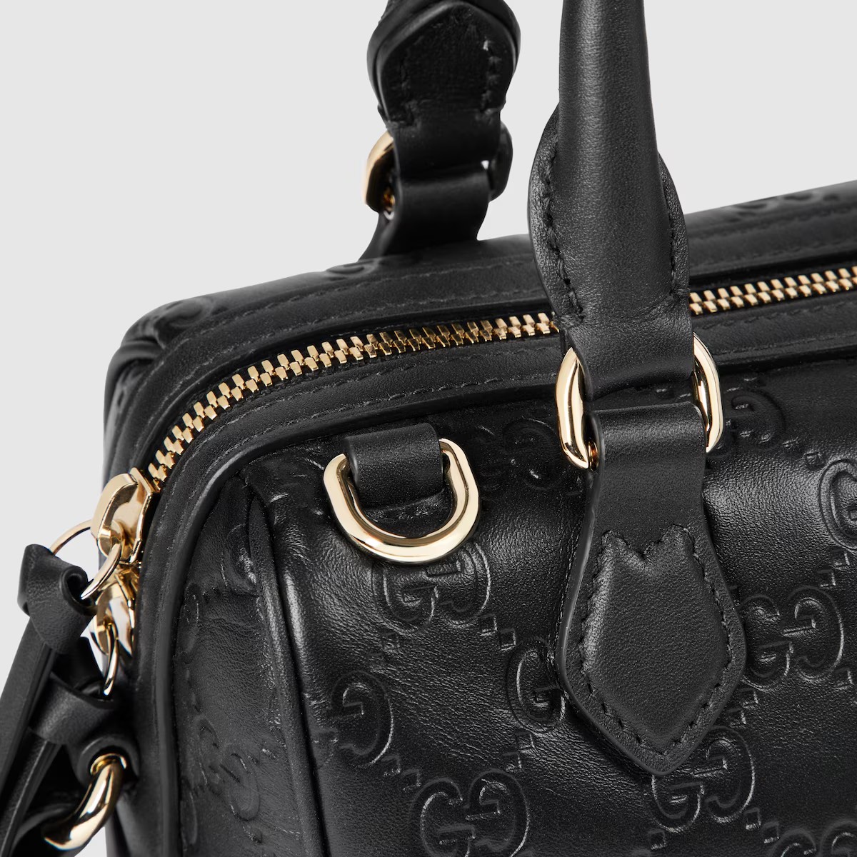 2025 가을-겨울 컬렉션, 창의성과 혁신적인 기능으로 시그니처 모티브를 재해석하는 GG 엠블럼 컬렉션. 상징적인 GG 엠보스 레더 소재 보스턴백. 조절 가능한 레더 숄더 스트랩, 안전한 지퍼 클로저가 있는 디자인.