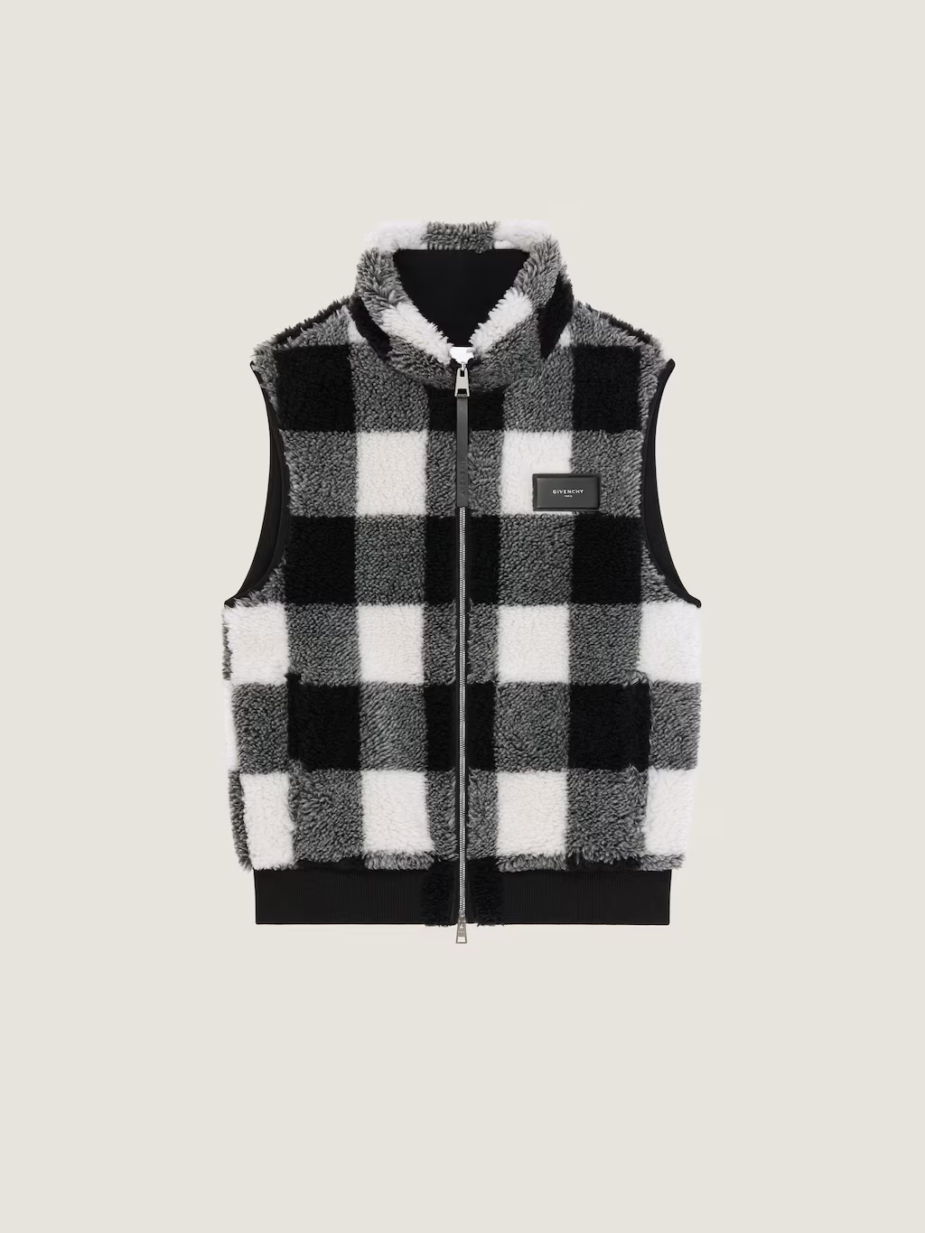체크 무늬 슬리브리스 플리스 재킷