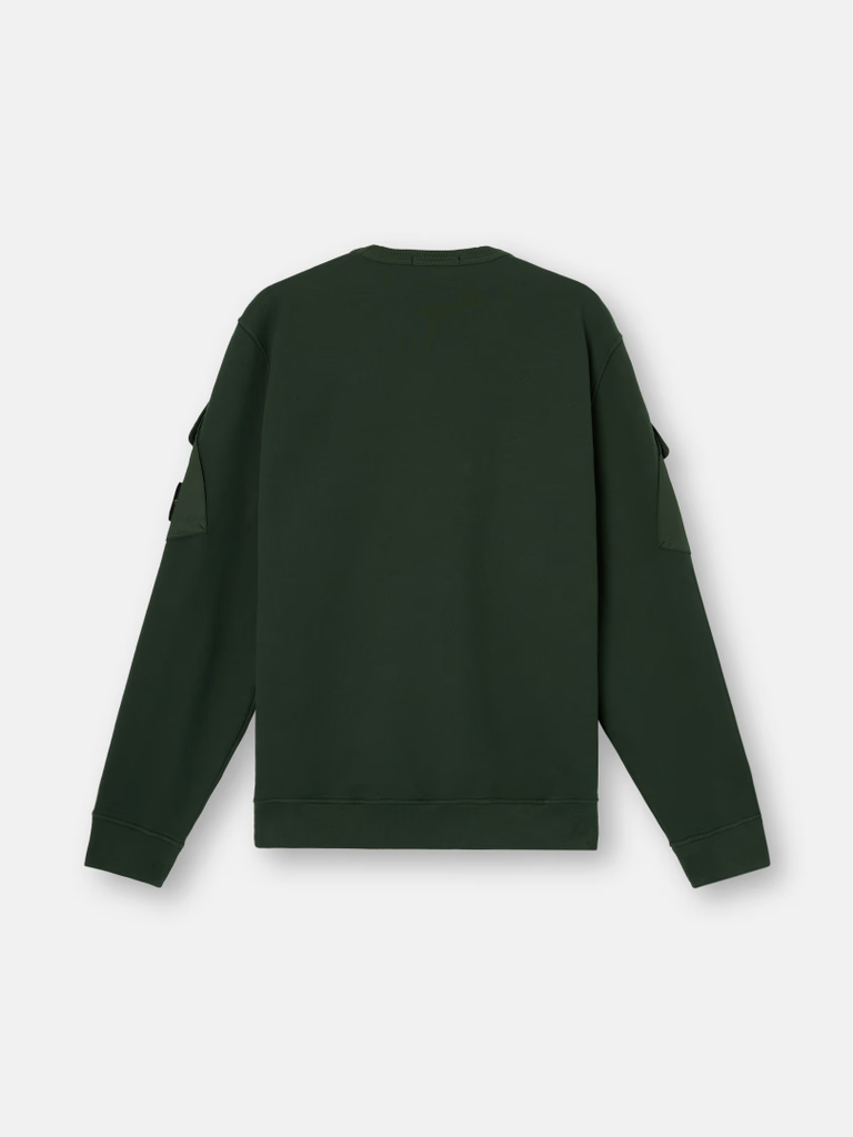 슬리브 포켓 디테일 레귤러 핏 크루넥 스웨트셔츠 > 남성의류