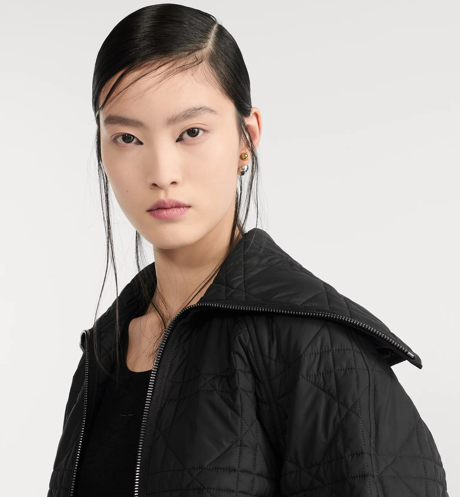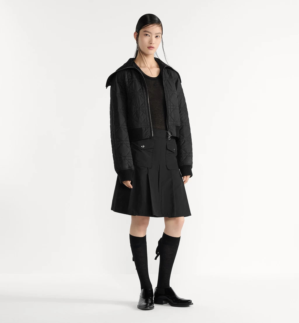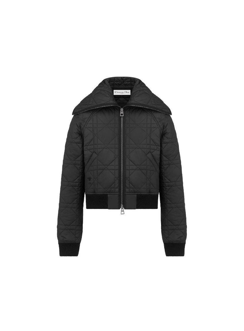 디올 하우스의 아이코닉한 매크로까나쥬 모티브를 퀼트-이펙트로 해석한 지퍼 재킷입니다. 블랙 컬러의 초경량 테크니컬 태피터 소재로 제작되었으며, 캐주얼한 크롭 실루엣, 오버사이즈 칼라, 양 옆면의 포켓이 특징입니다. 밑단과 커프스의 리브드 디테일로 완성된 재킷으로, 이번 시즌의 다양한 캐주얼 룩에 매치하기 좋습니다.