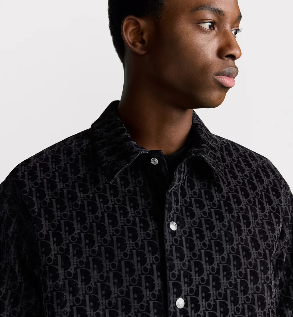 홀마크 Dior Oblique 모티브를 올오버 플록 레이저 프린트 버전으로 풀어낸 오버셔츠입니다. 블루 컬러의 코튼 블렌드 트윌 소재로 제작되었으며, 편안한 타임리스 컷이 특징입니다. 실용적인 내부 포켓으로 완성된 오버셔츠로 진과 세트로 매치하거나 이번 시즌의 다양한 팬츠와 매치하기 좋습니다.