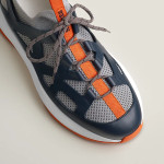 그래픽적인 컷아웃 디테일이 특징인 니트 및 카프스킨 소재의 스니커즈