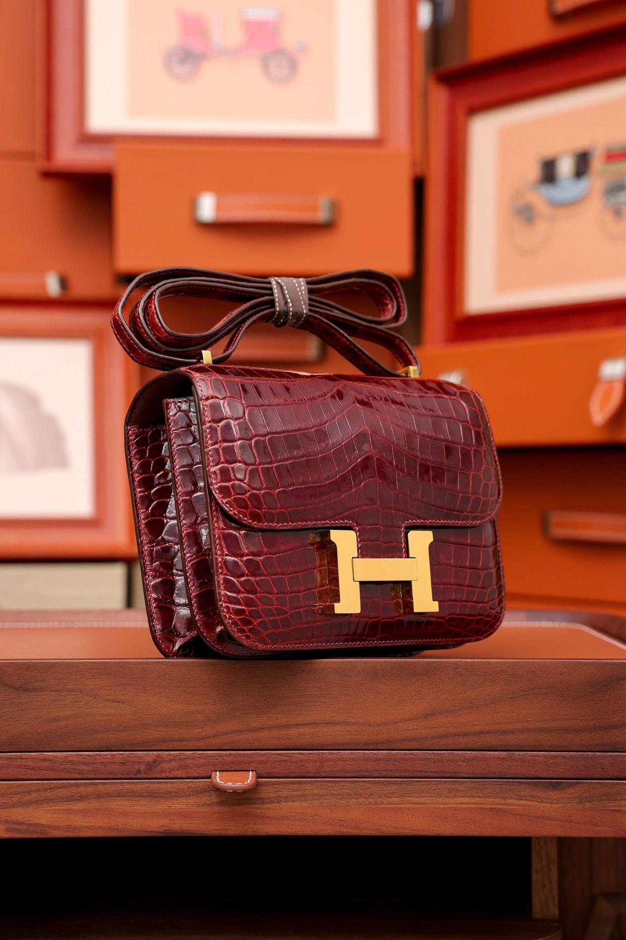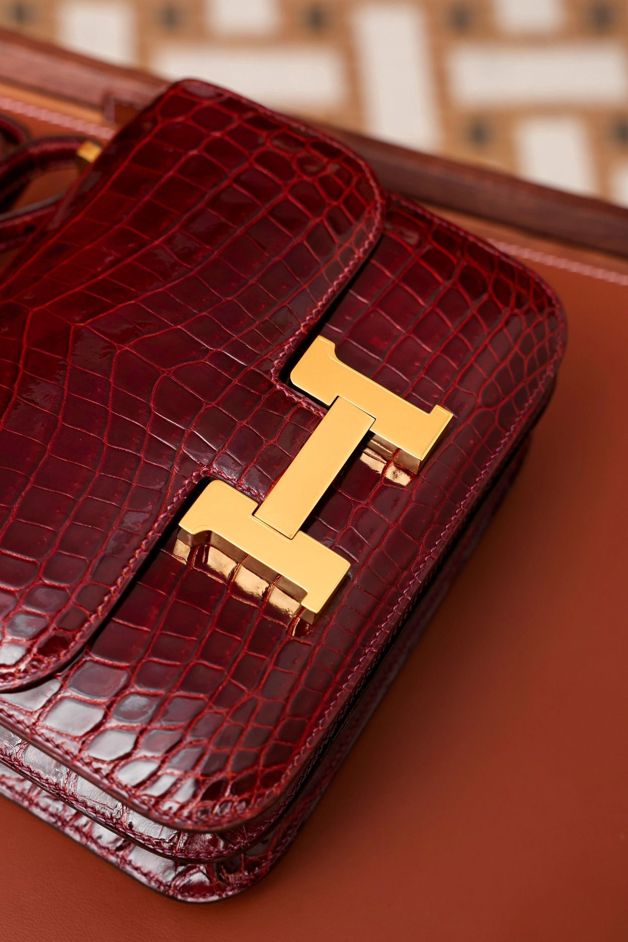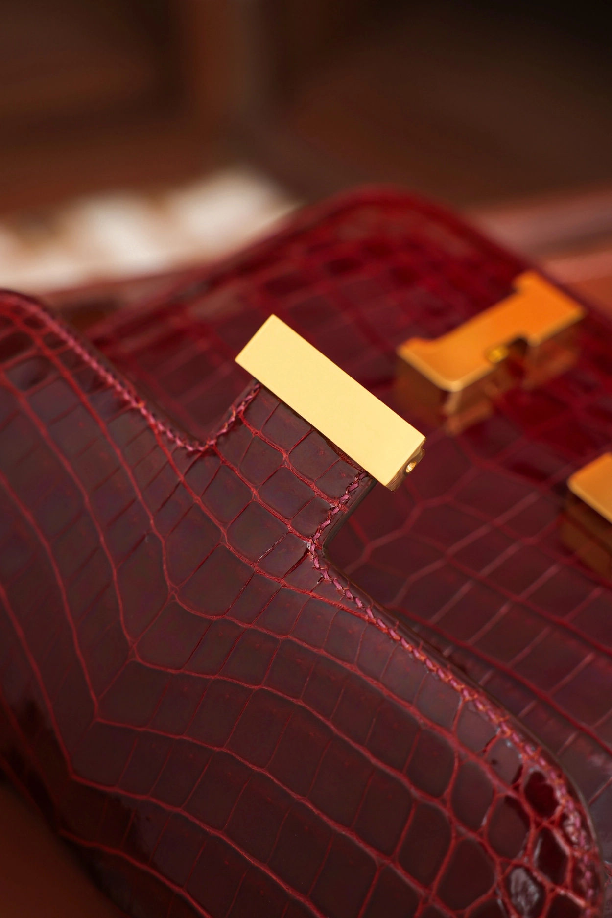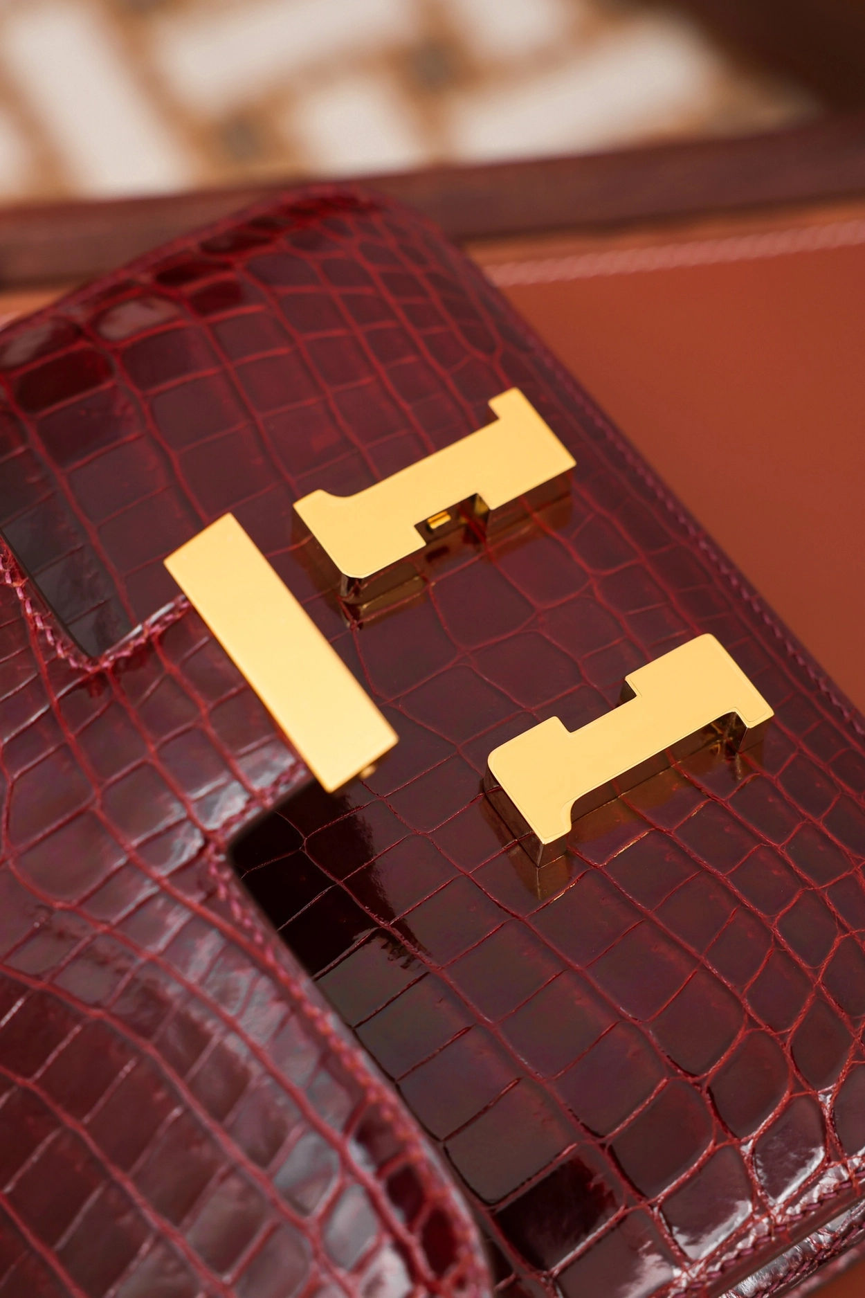 • 에르메스 콘스탄스 18 엘리게이터 버건디 골드 하드웨어