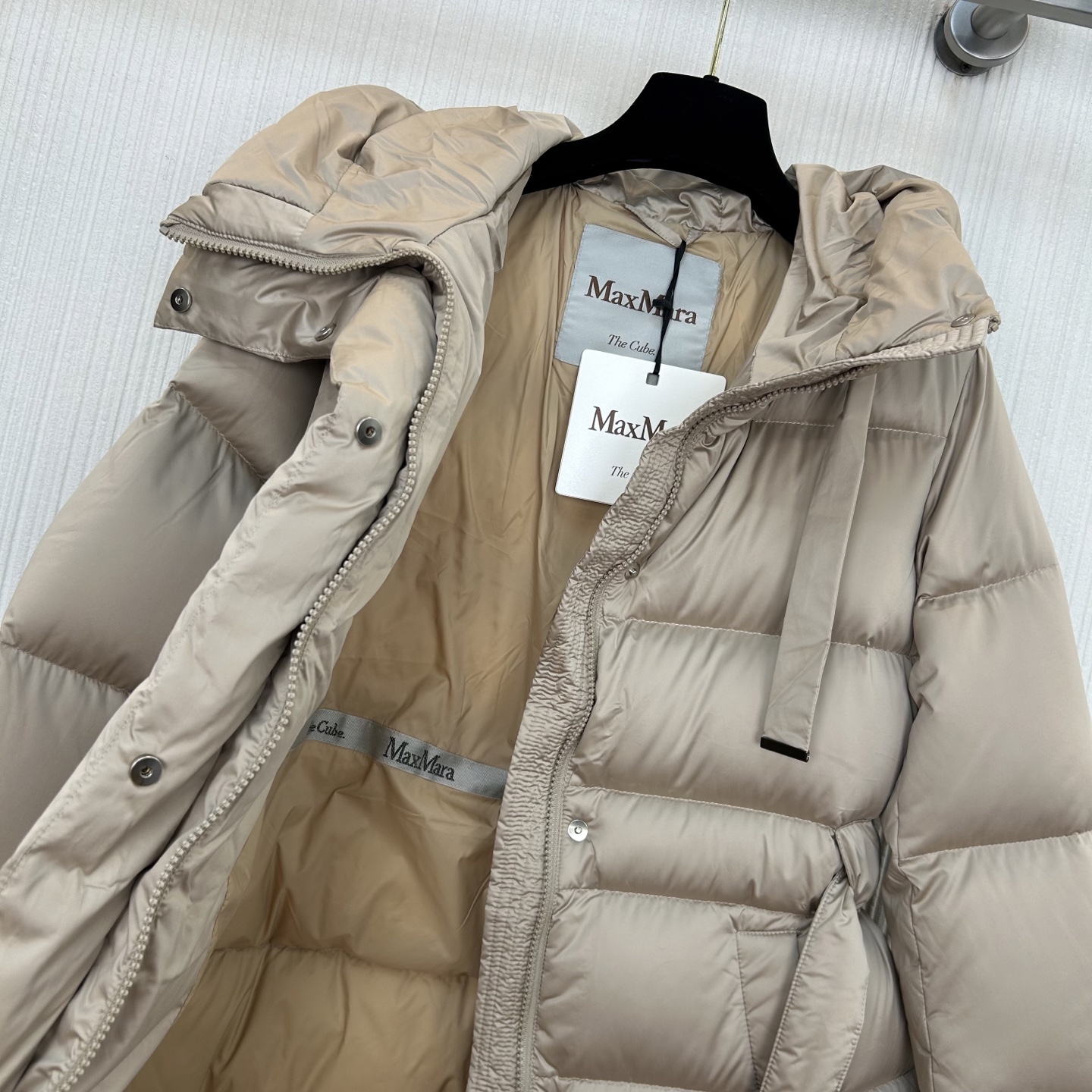 막스마라 미디엄 기장 후드 다운 재킷
