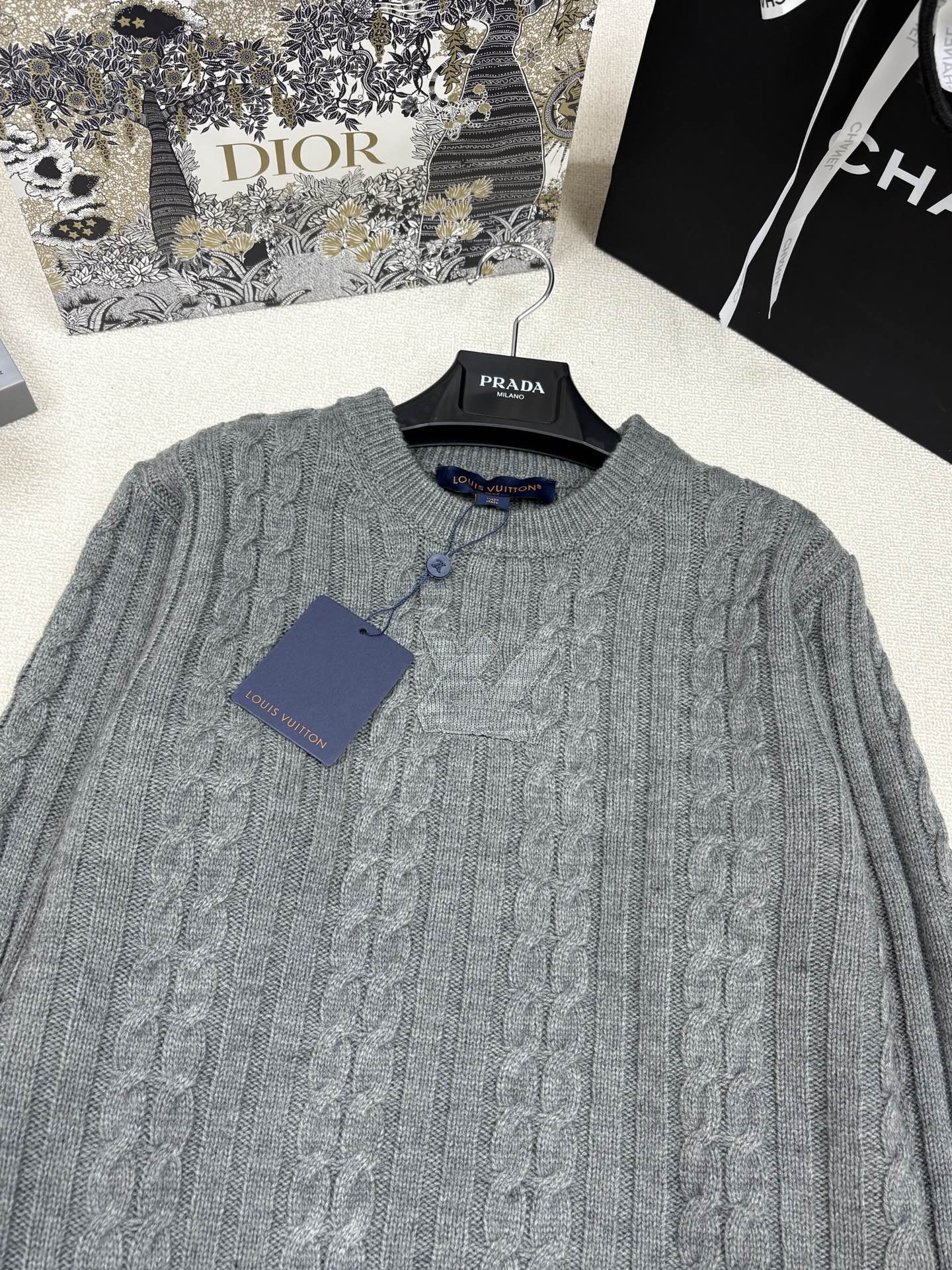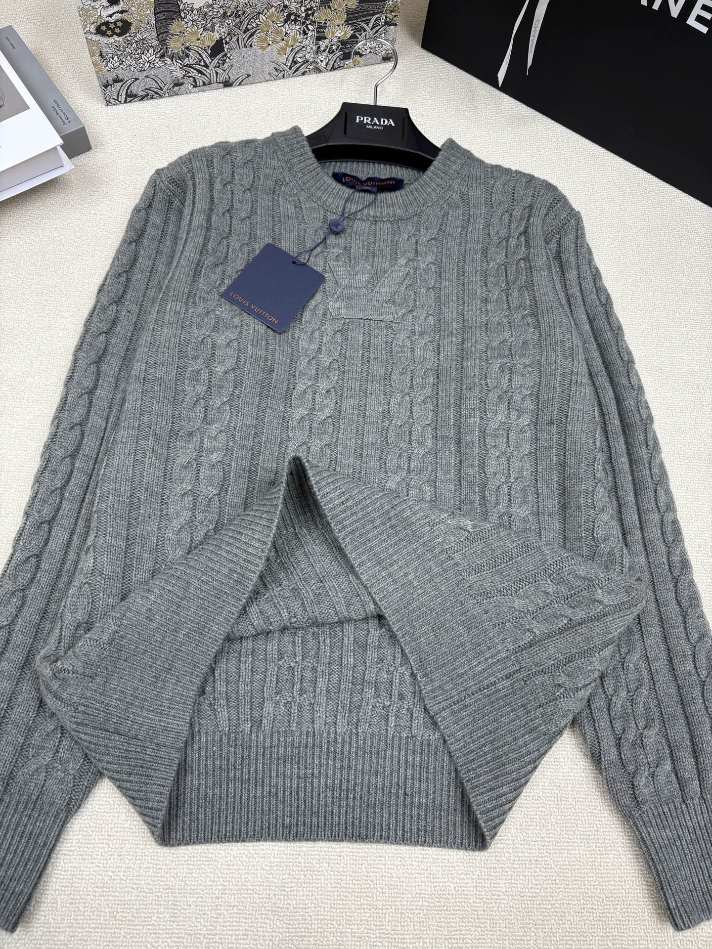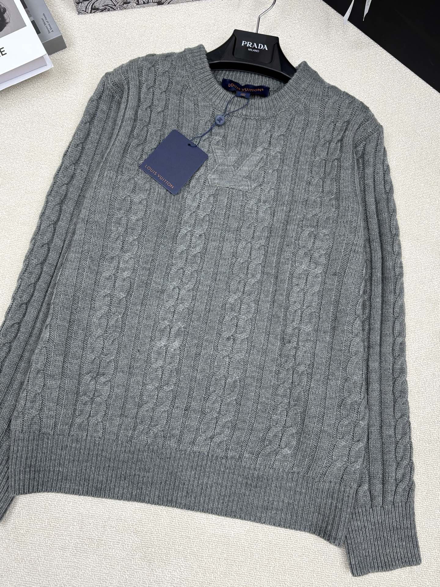 LV 풀오버 트위스트 스트링 라운드넥 니트