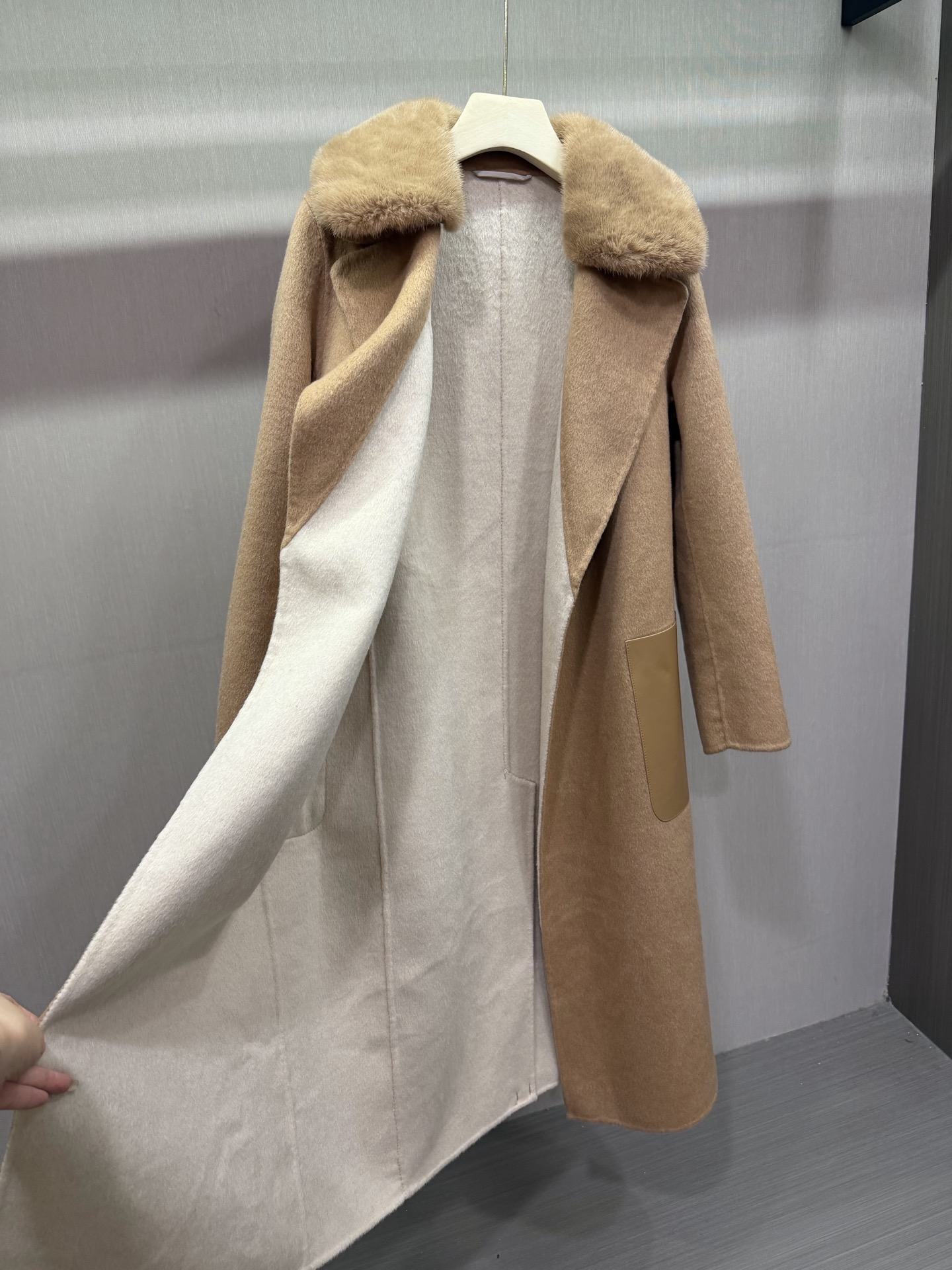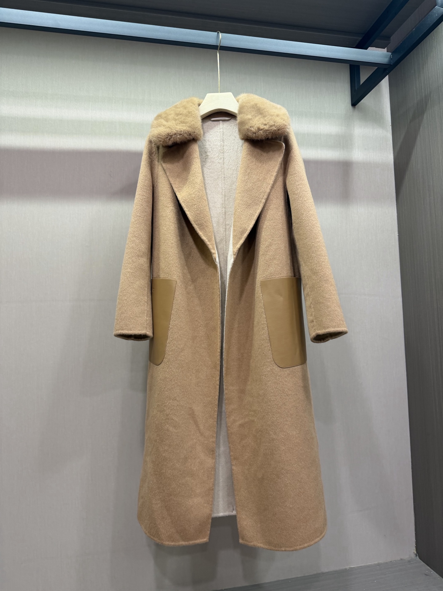 팬디 캐시미어 가죽포켓 코트