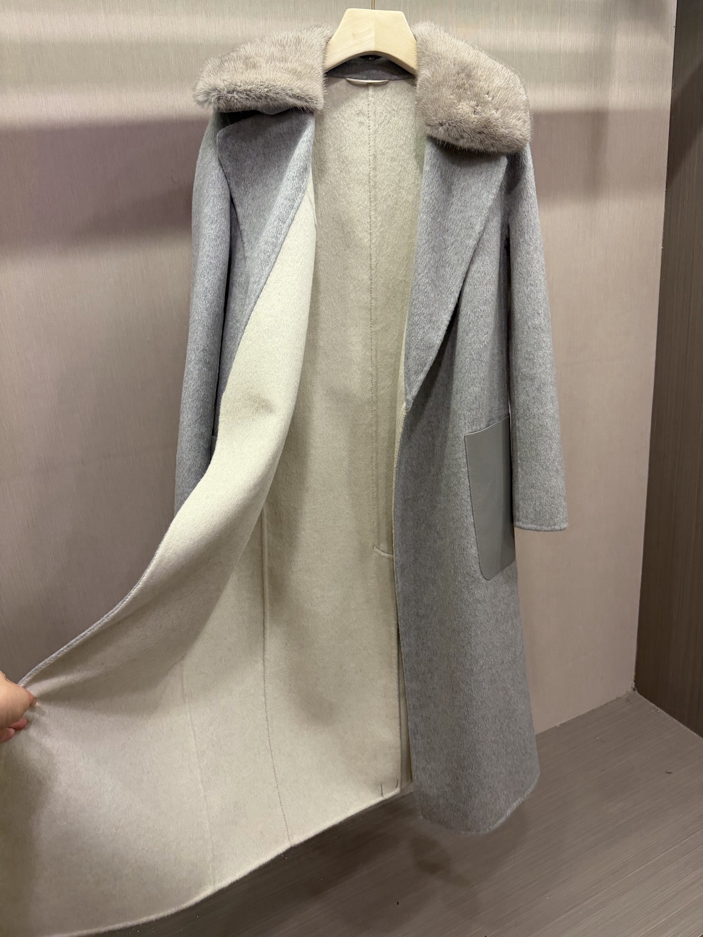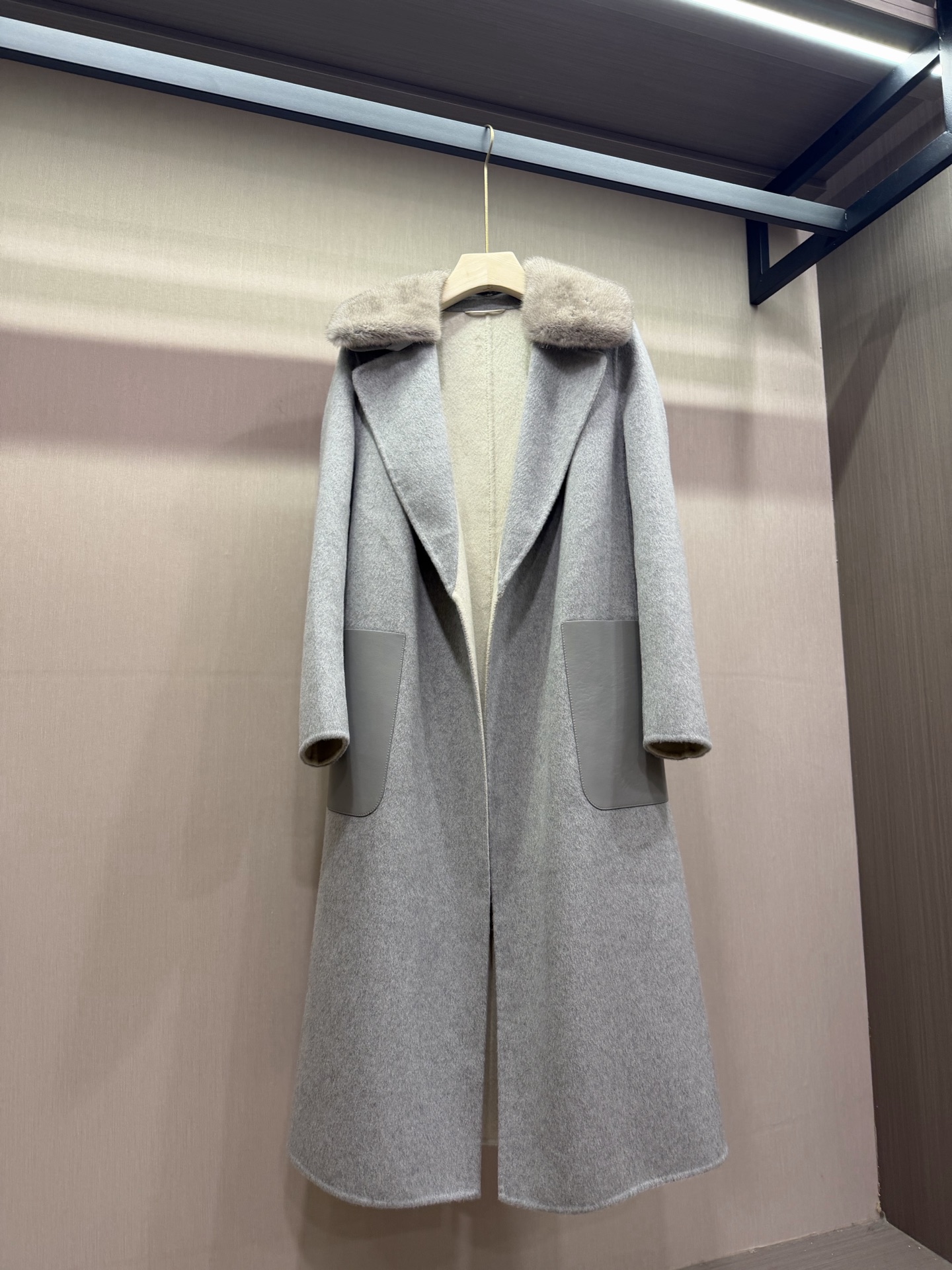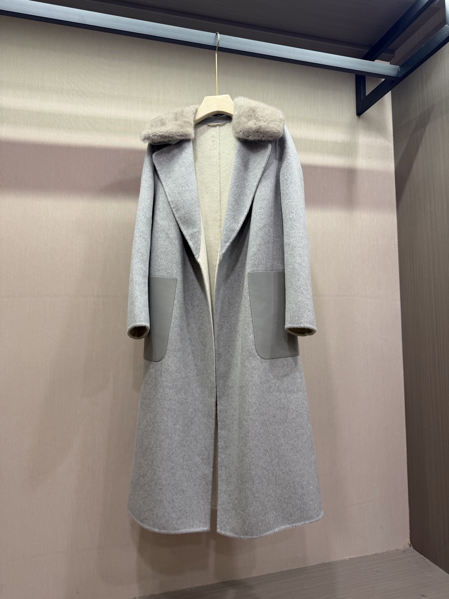 팬디 캐시미어 가죽포켓 코트