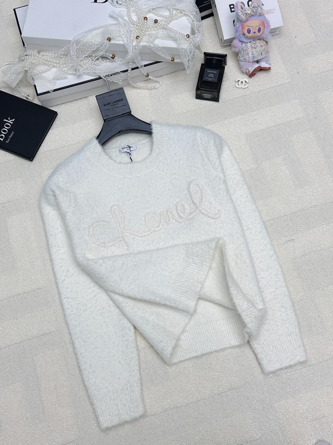 샤넬 콘트라스트 라운드넥 니트