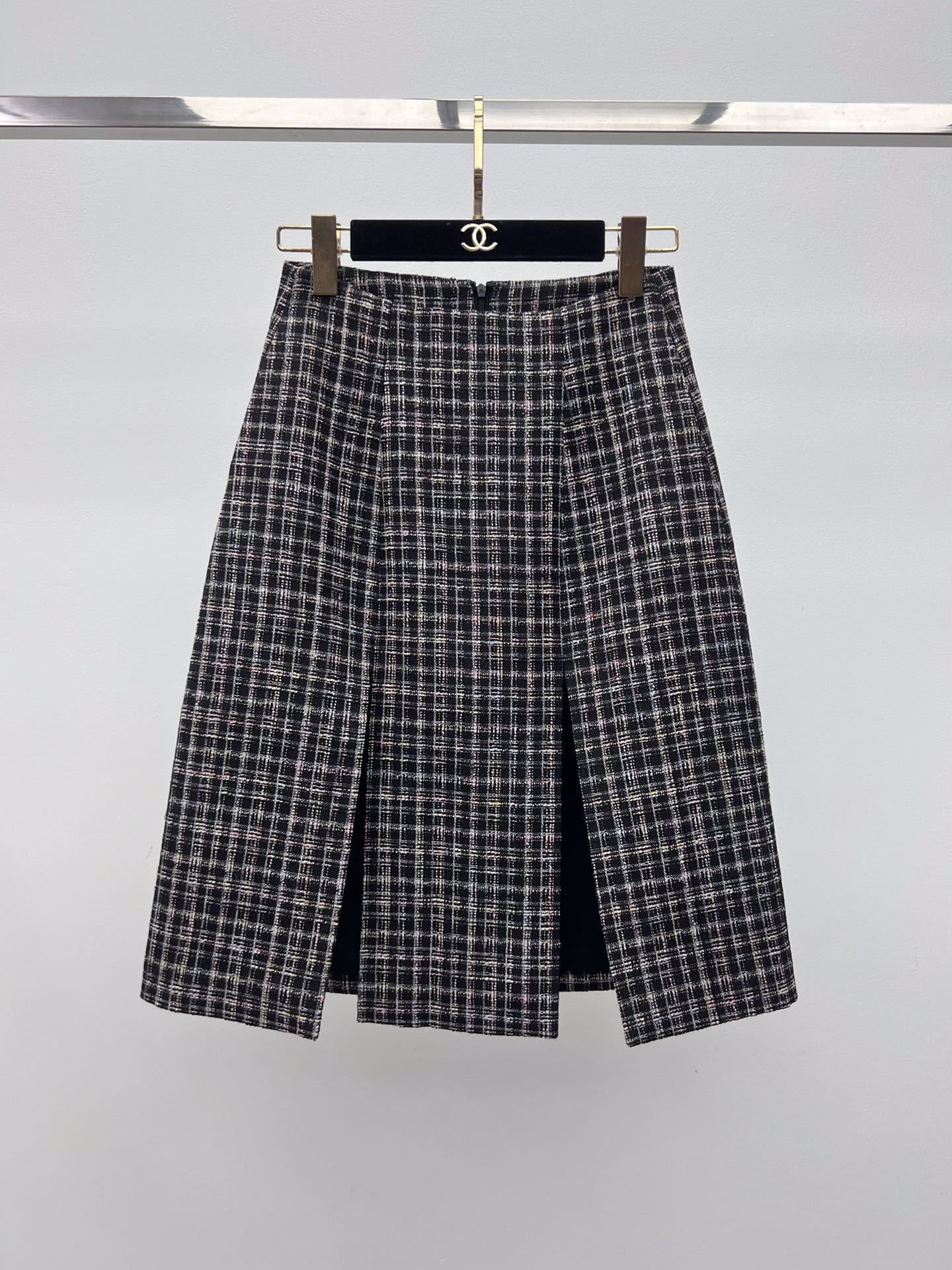 샤넬 핑크 플레드 튀드 스커트 > 여성의류