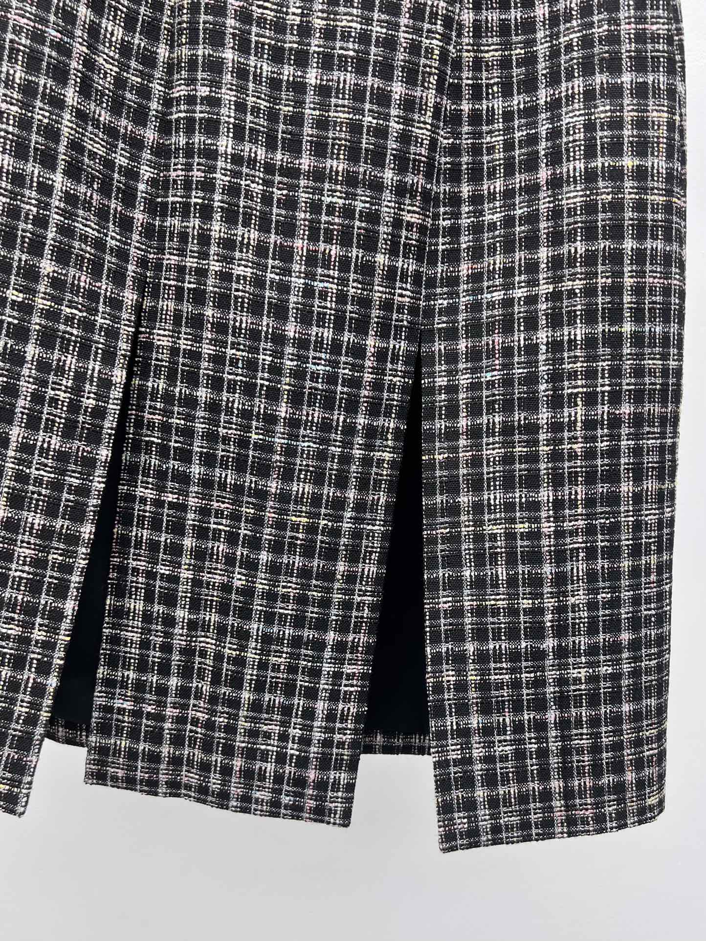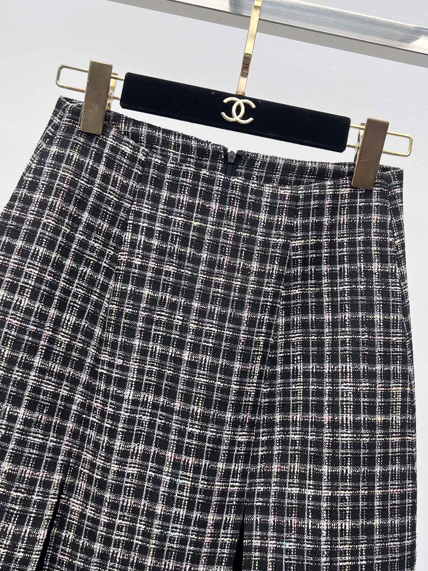 샤넬 핑크 플레드 튀드 스커트
