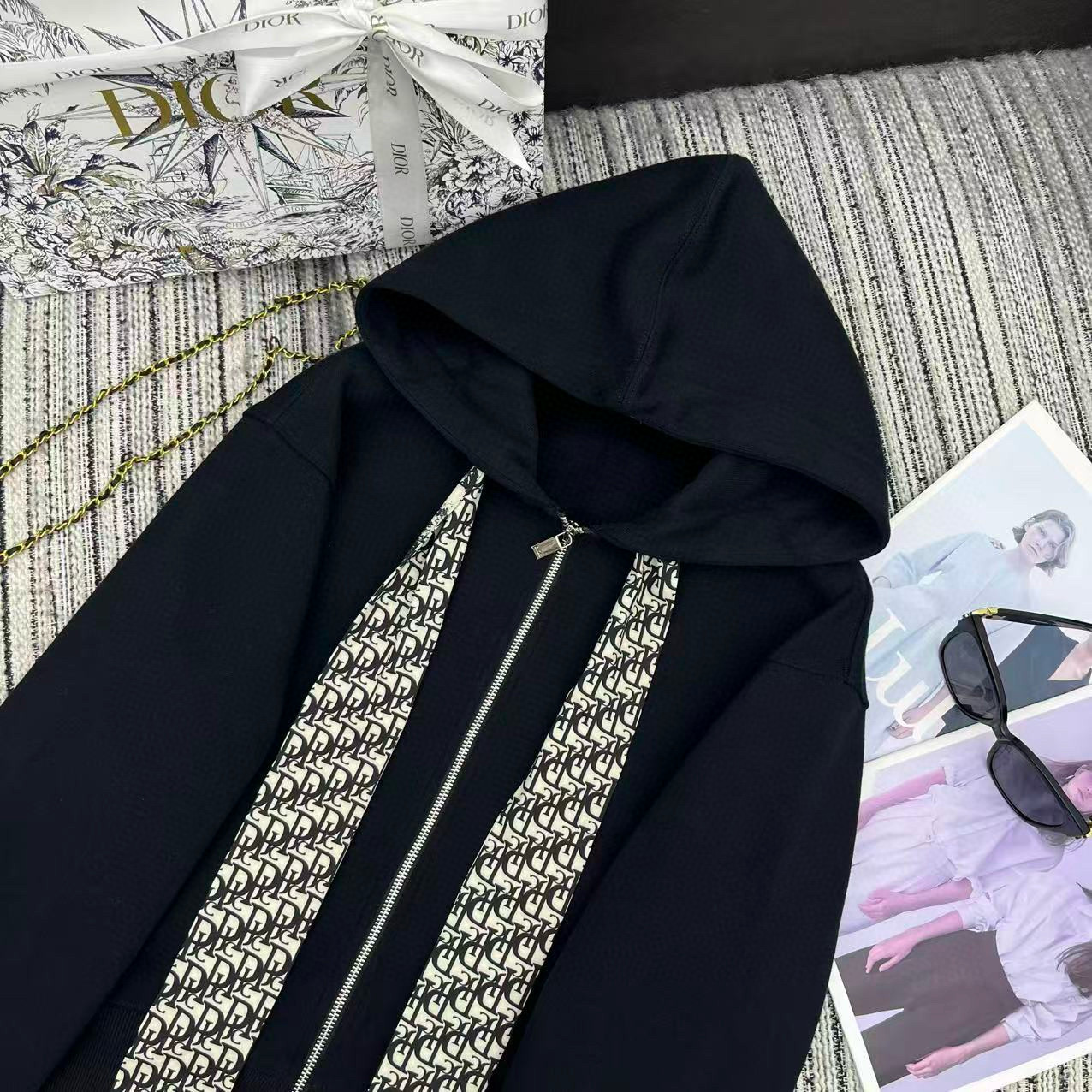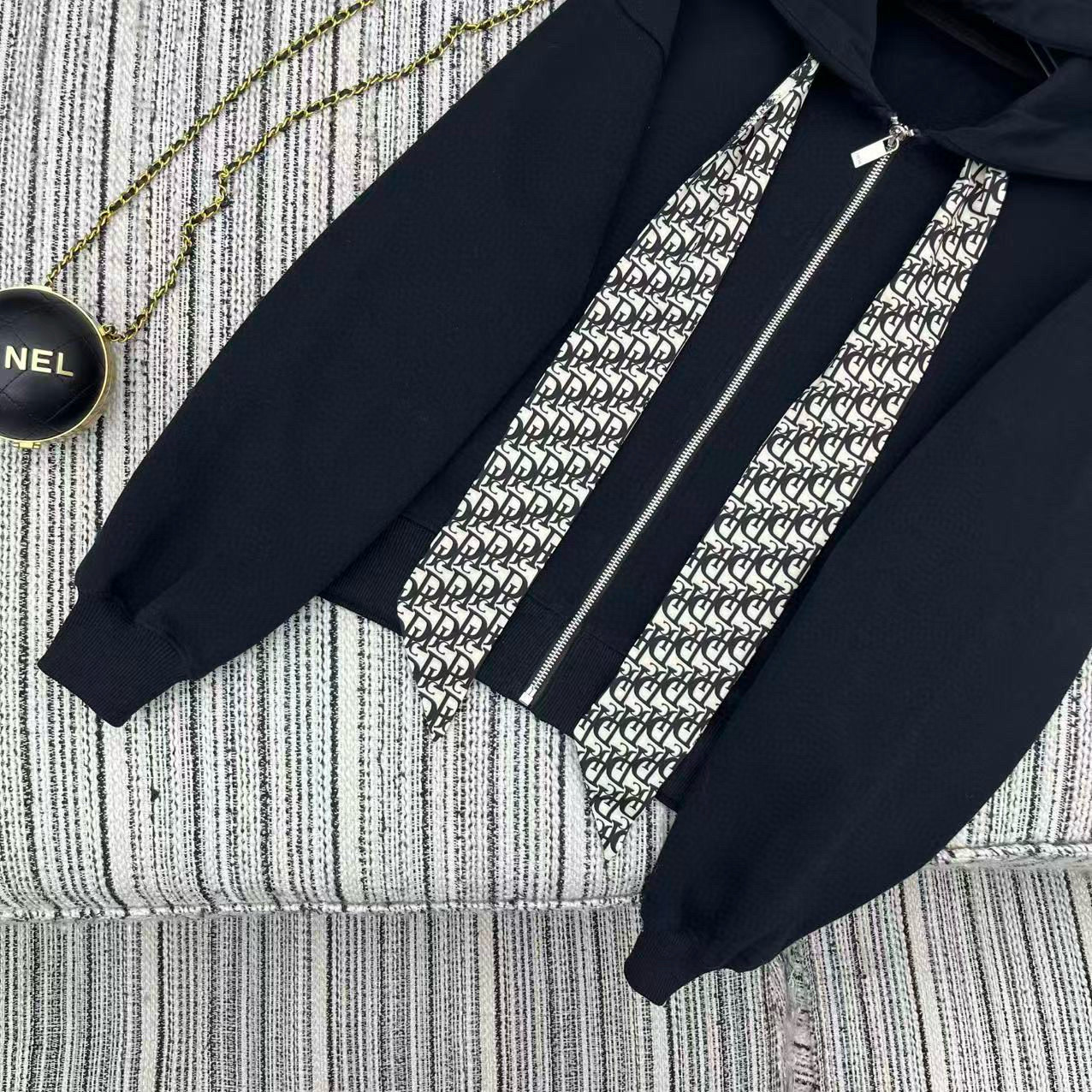 디올 벨벳 콘트라스트 후드 데일리