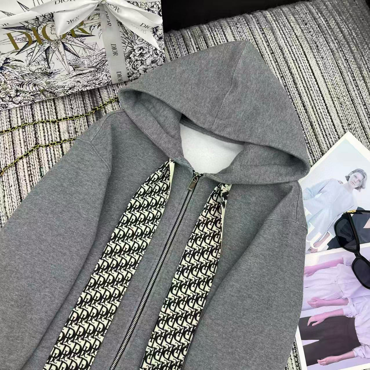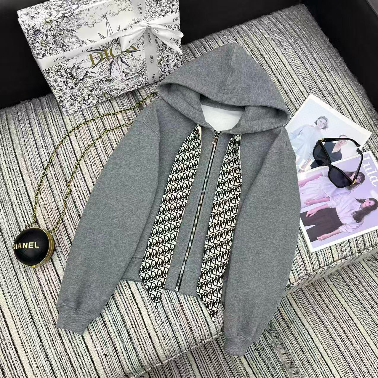 디올 벨벳 콘트라스트 후드 데일리