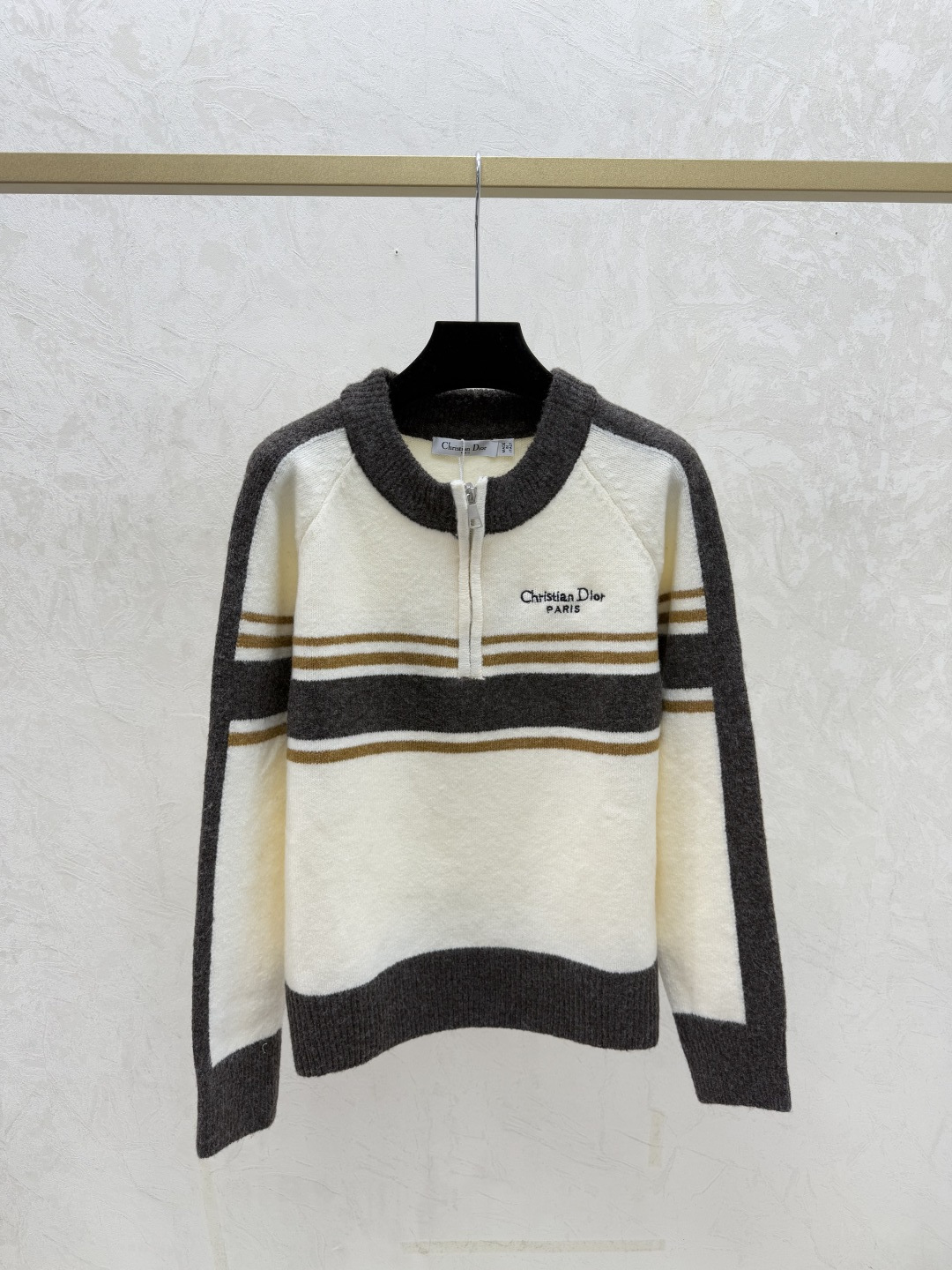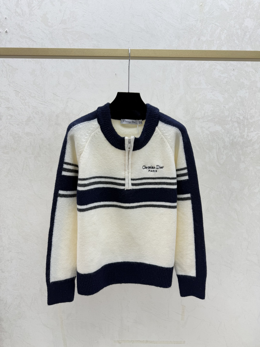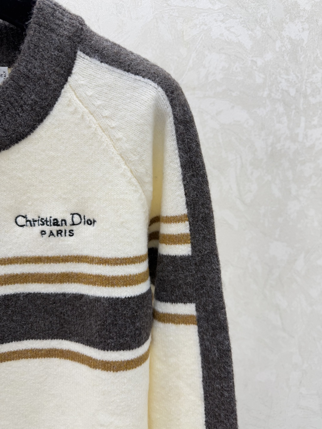디올 스트라이프 라운드 넥 롱니트