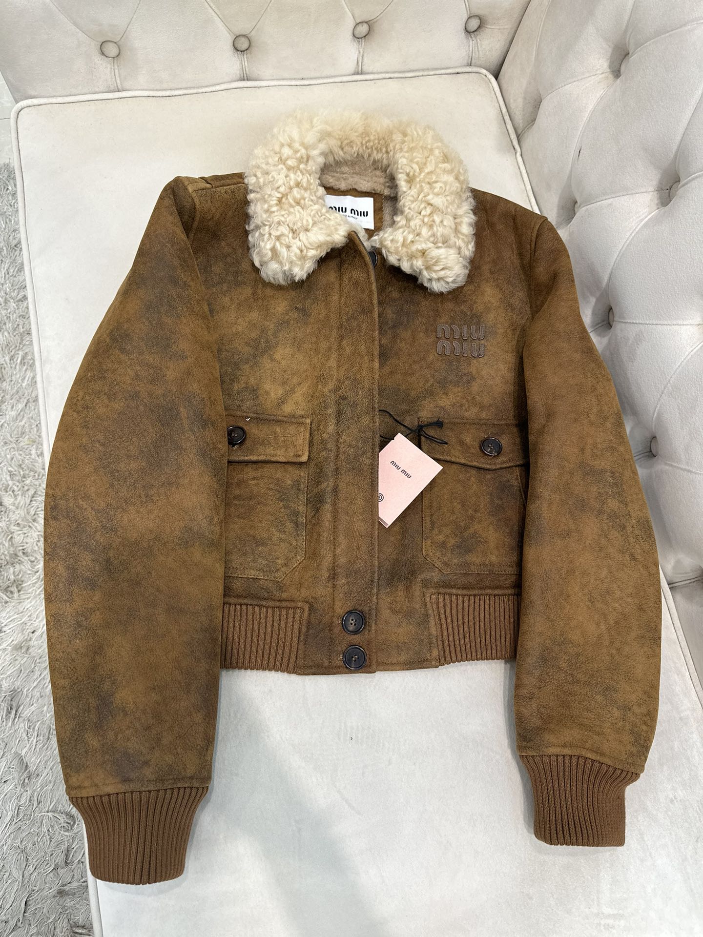 미우미우 스웨이드 프로스티드 패턴 재킷