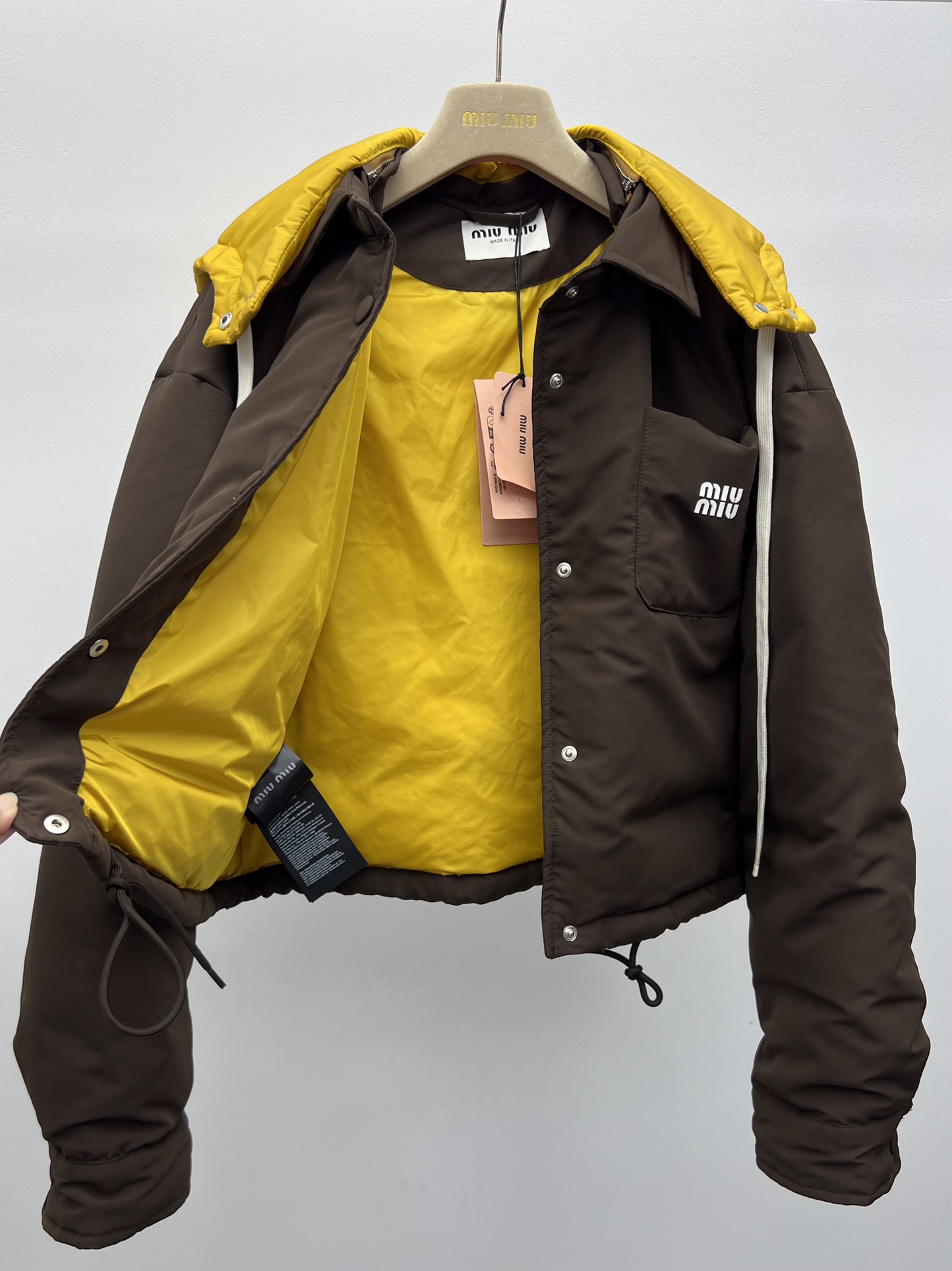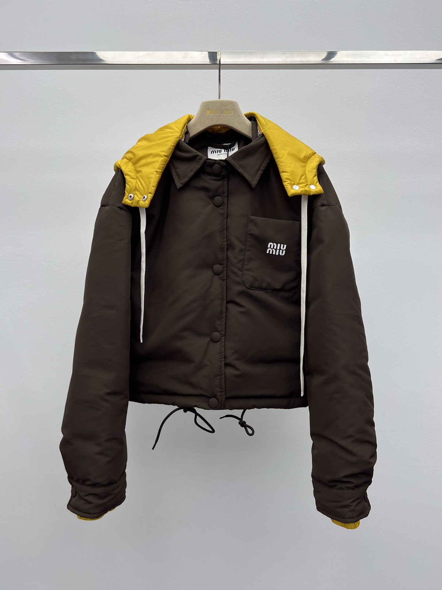 미우미우 콘트라스팅 후드 다운 재킷