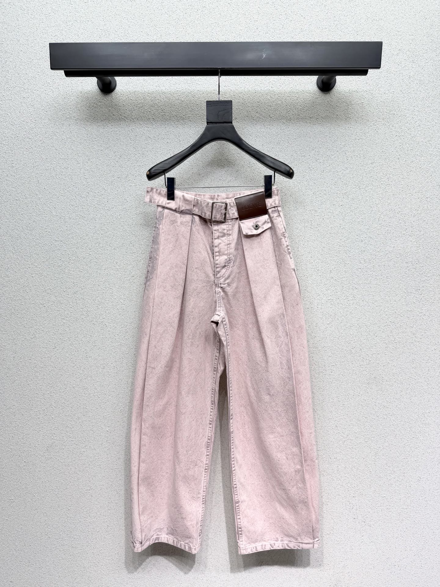 로에베 핑크 레더 라벨 데님