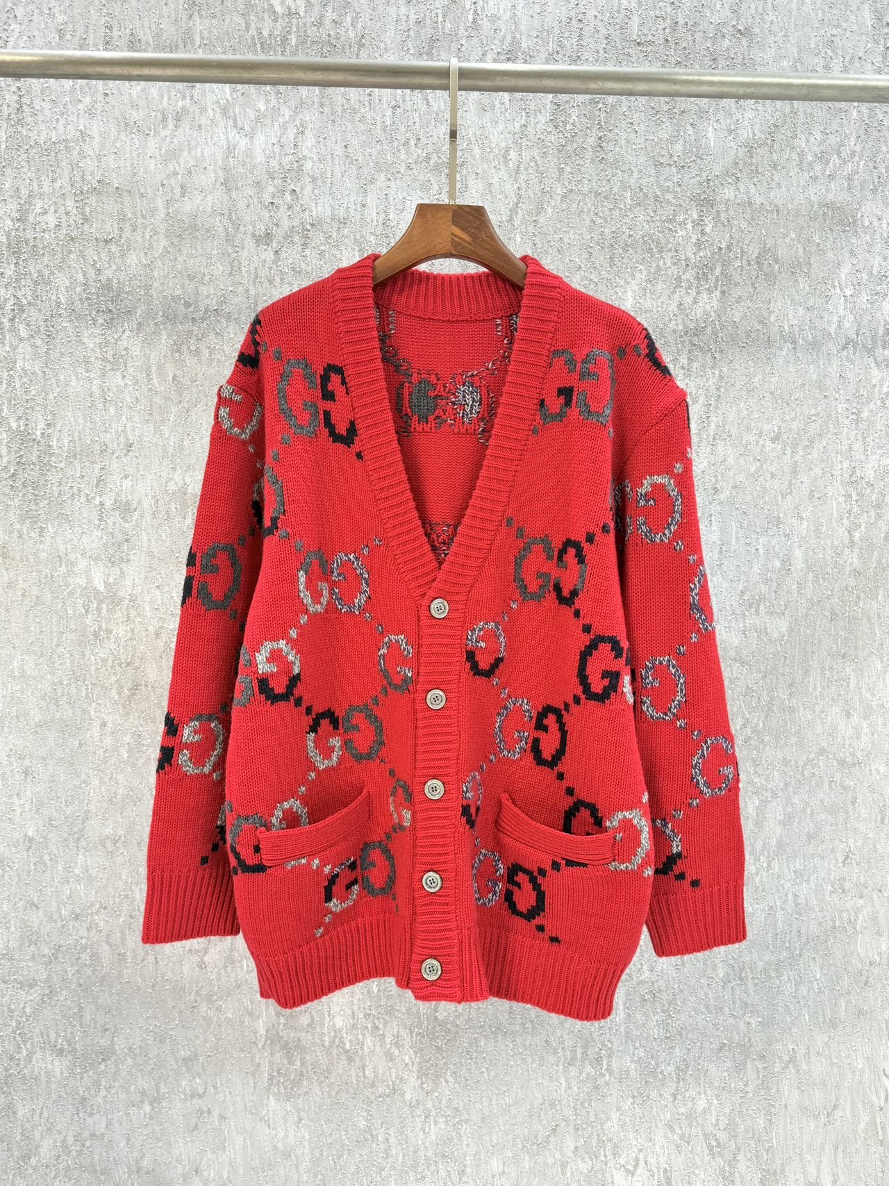 구찌 V넥 프렛 코튼 가디건