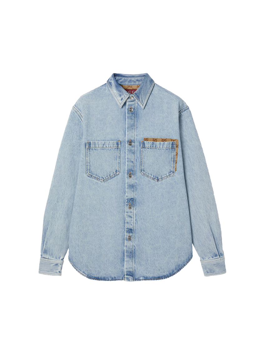 GG 인서트 워시드 데님 셔츠