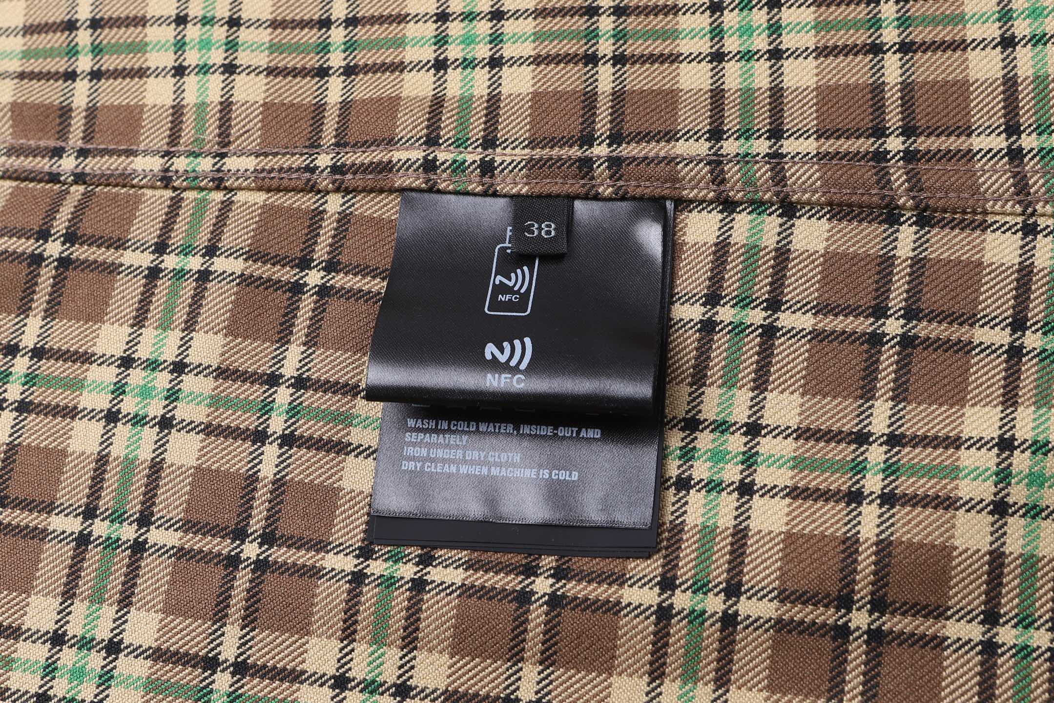 미우미우 라펠 대비 체크 튈 재킷