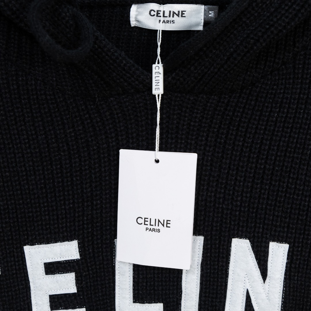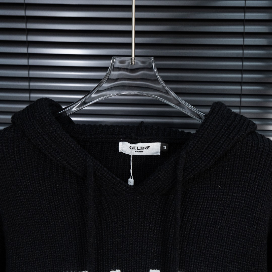 셀린느 자수 후드 니트
