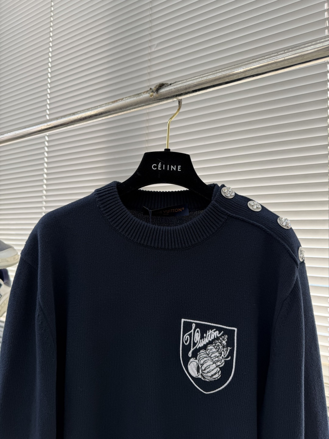 LV 로고 자수 라운드넥 스웨터