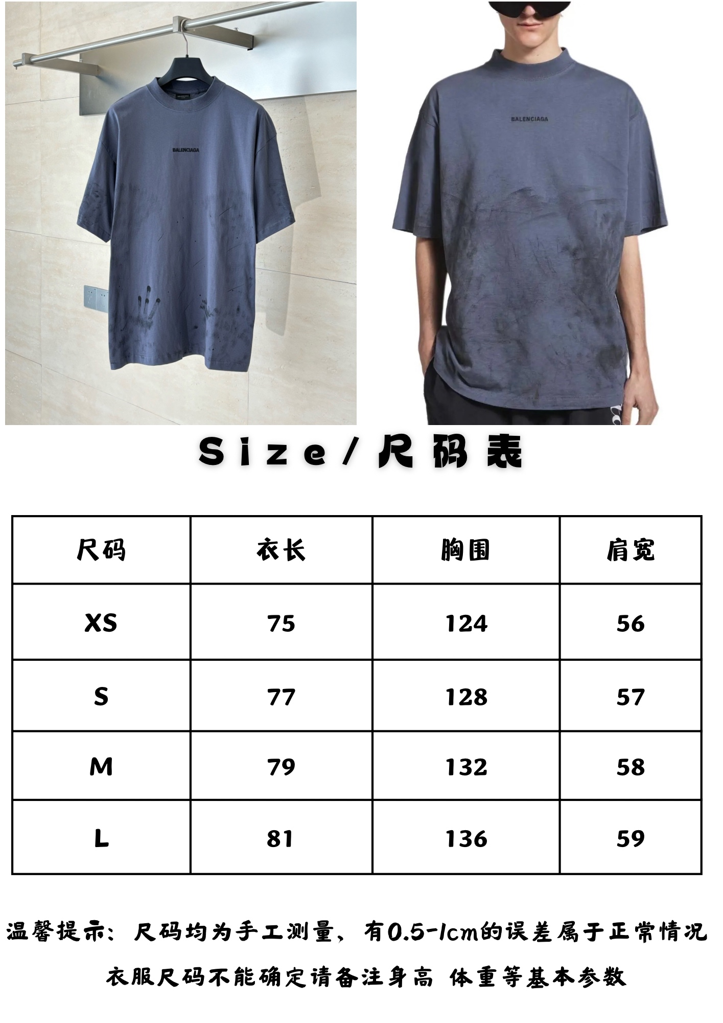 발렌시아가 잉크 디스트레스드 자수 반팔