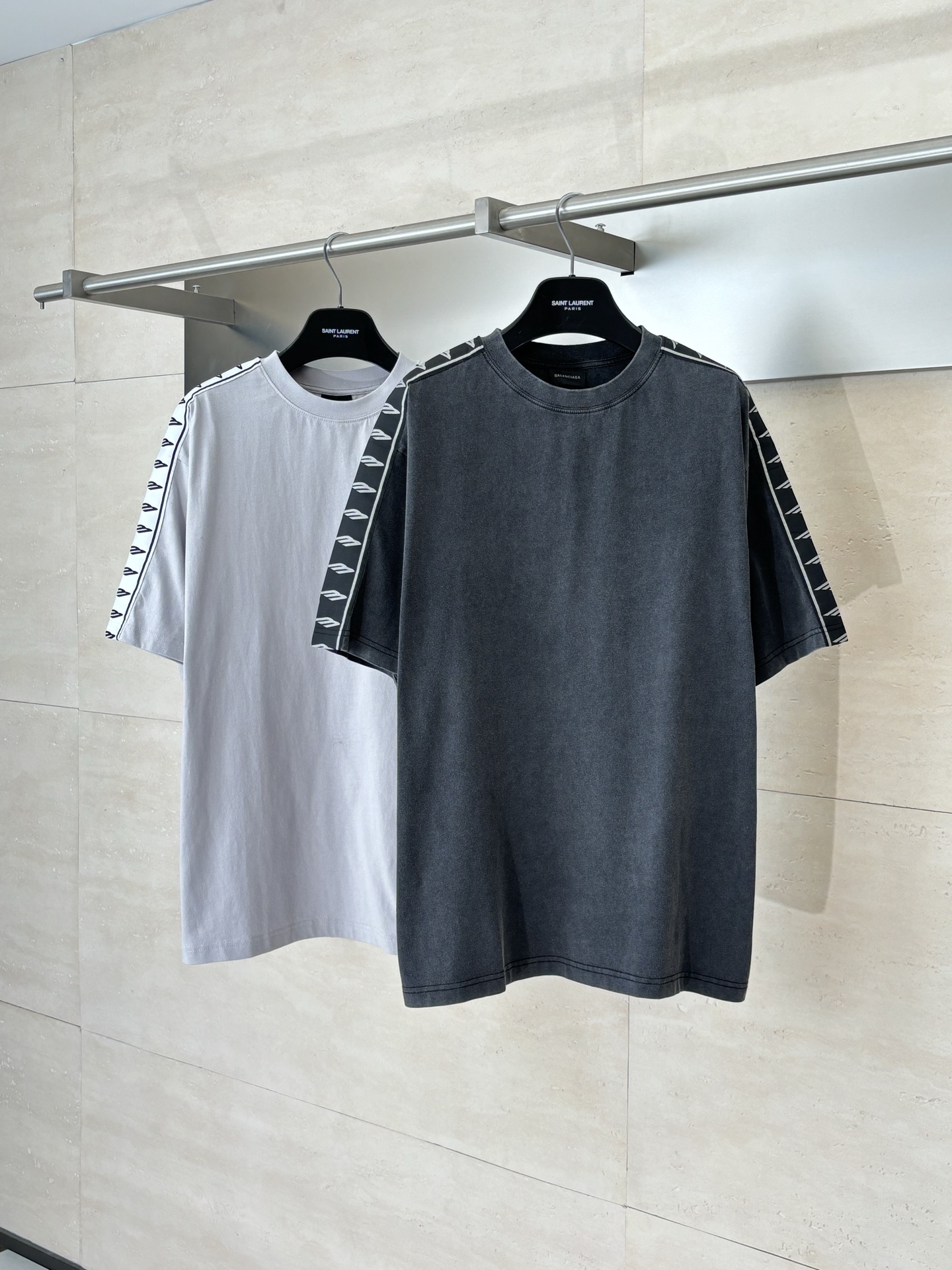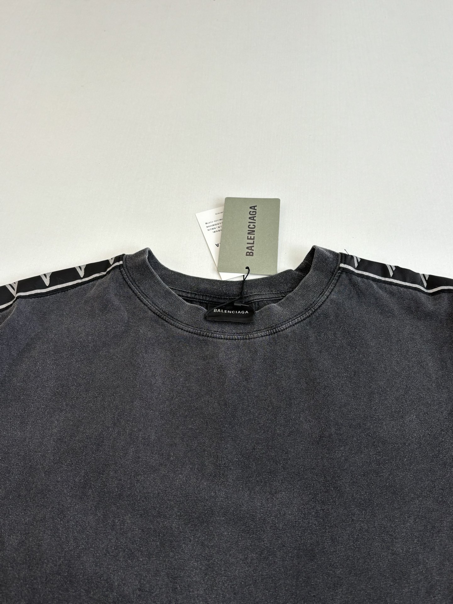 발렌시아가 자카드 스트링 라벨 티셔츠