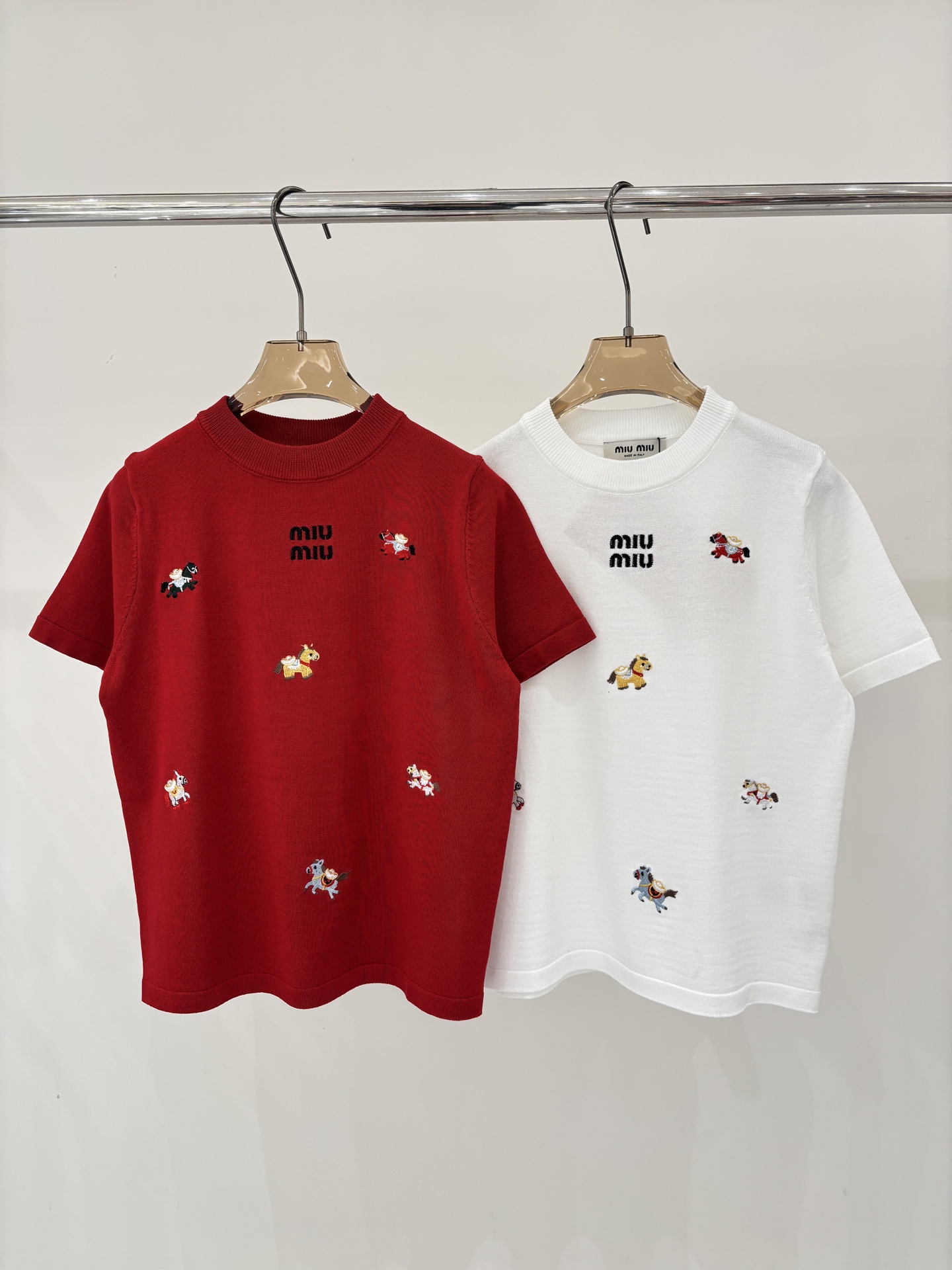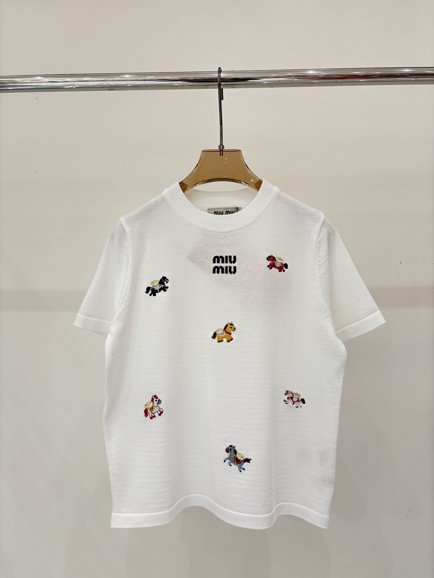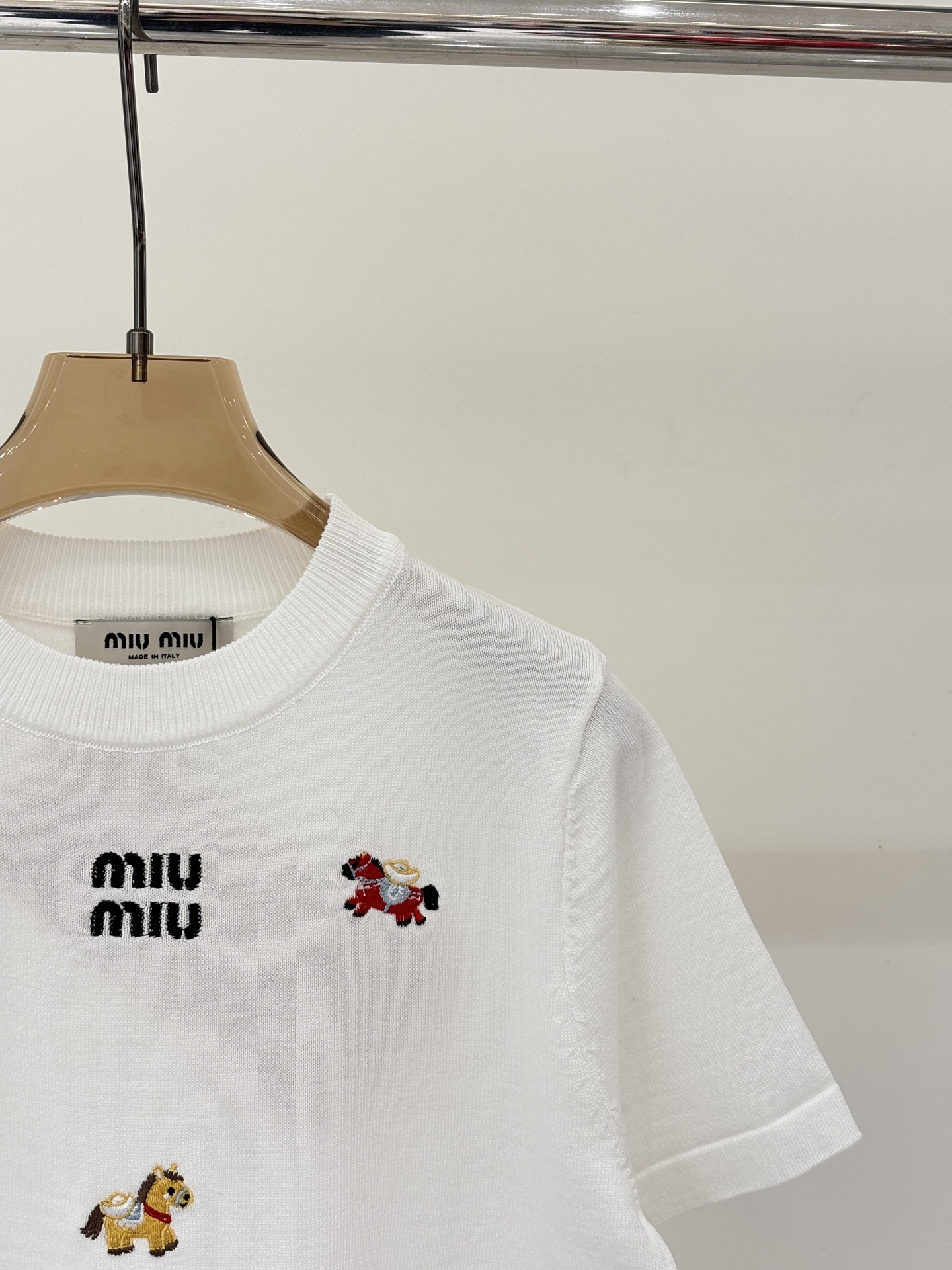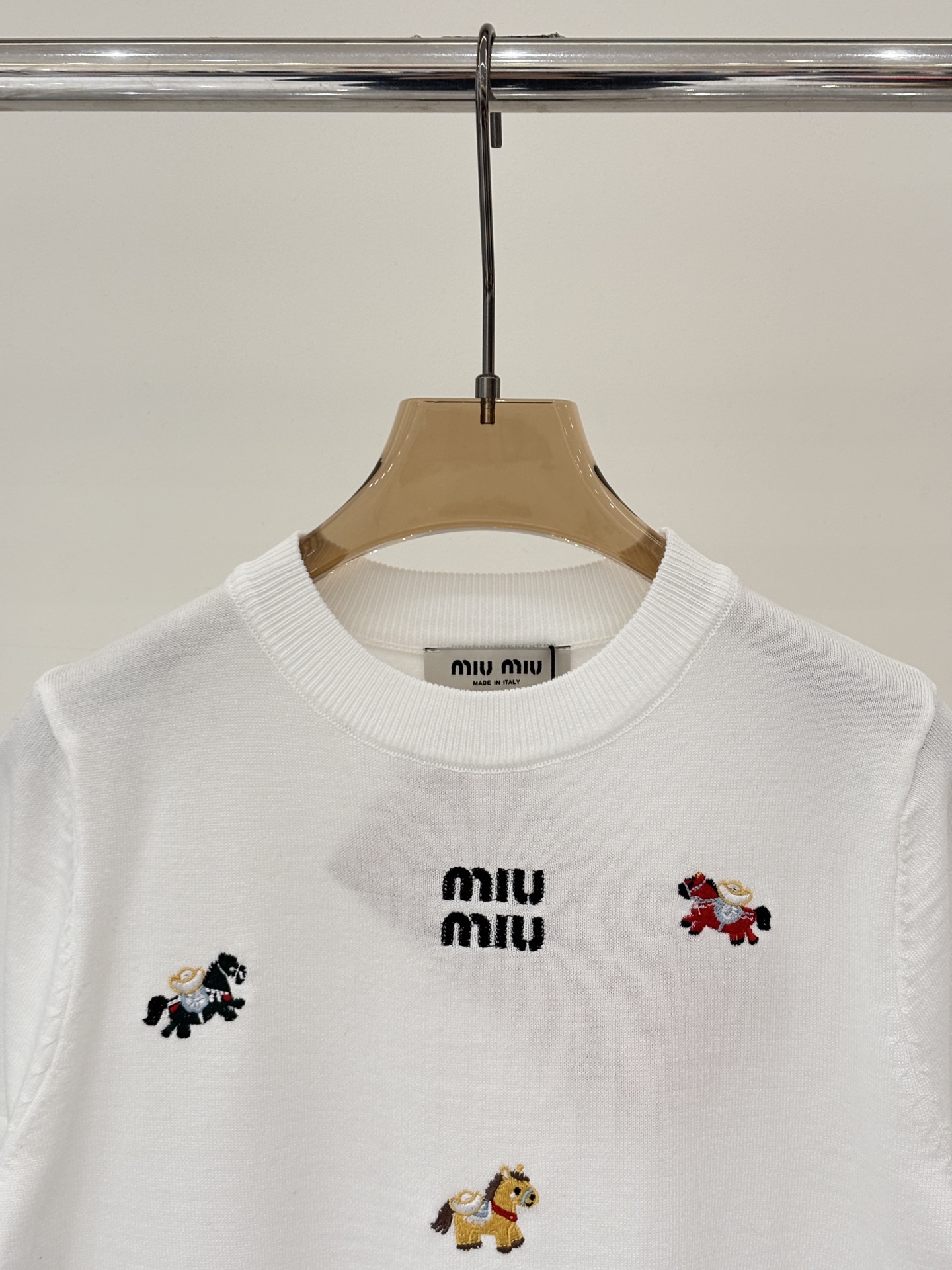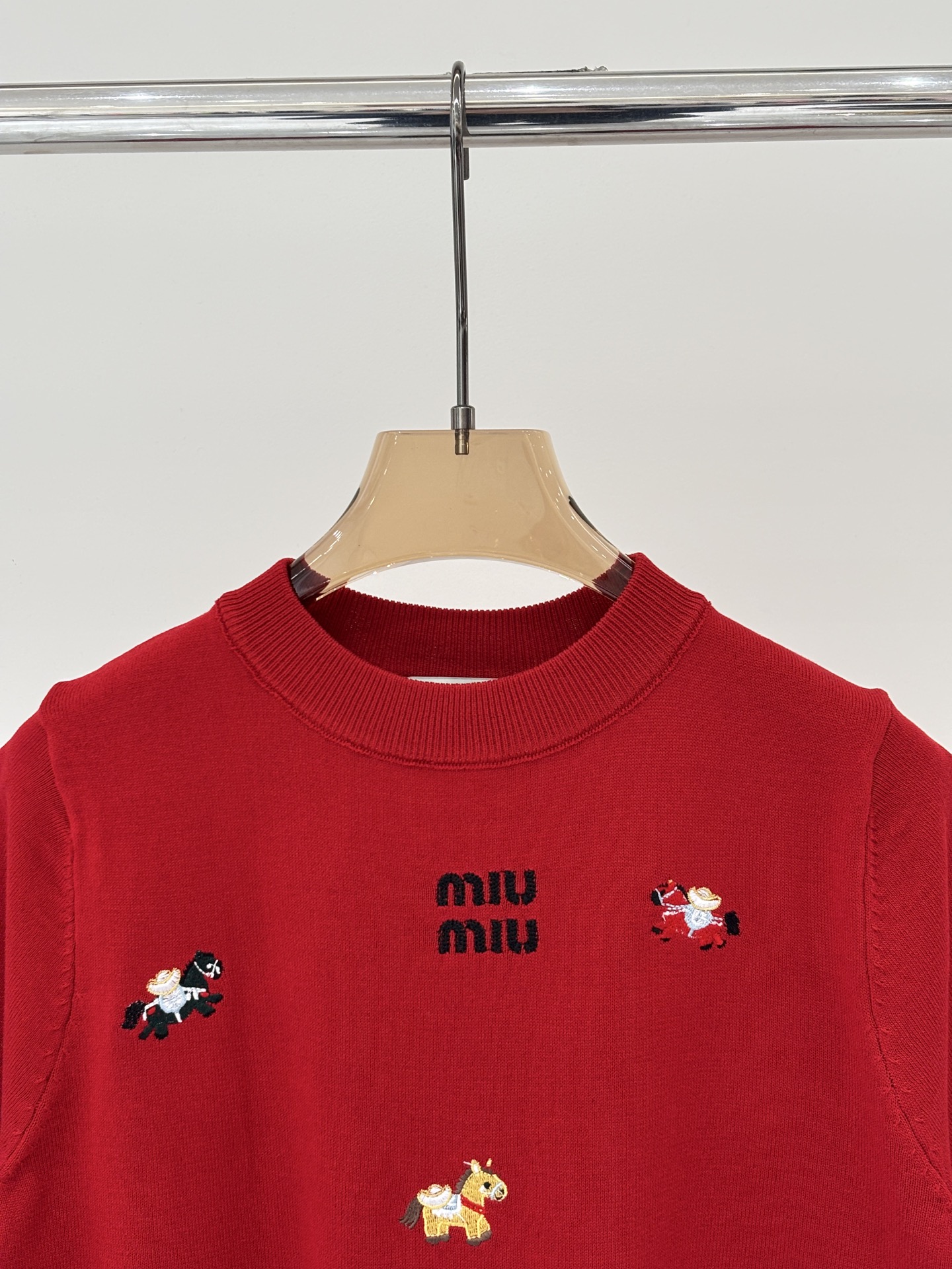 미우미우 라운드넥 레터 로고 자수 니트