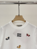 미우미우 라운드넥 레터 로고 자수 니트 > 여성의류
