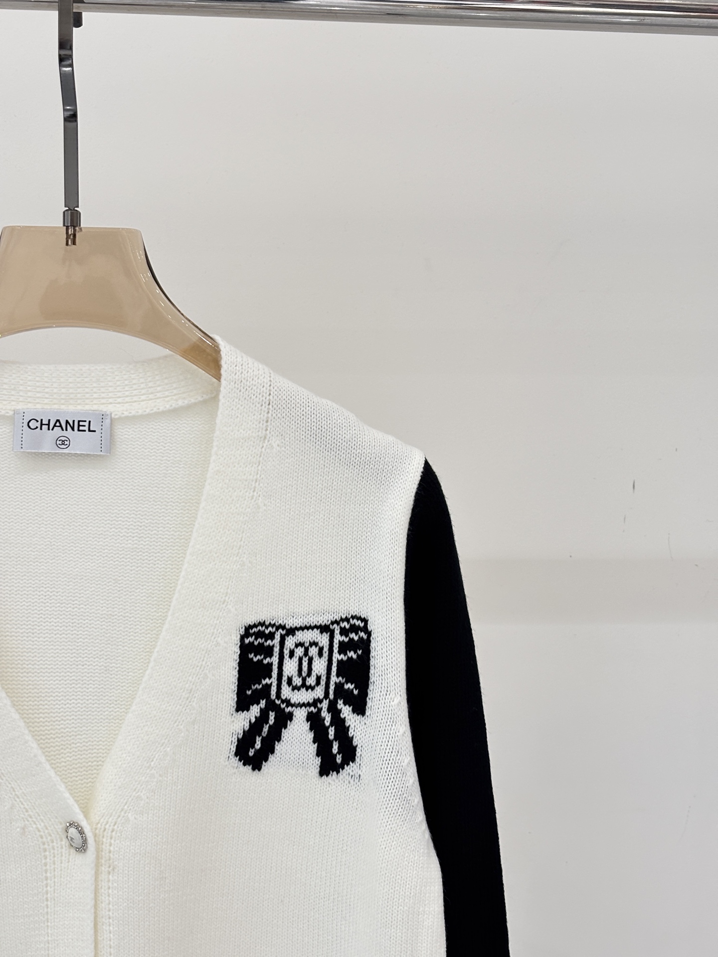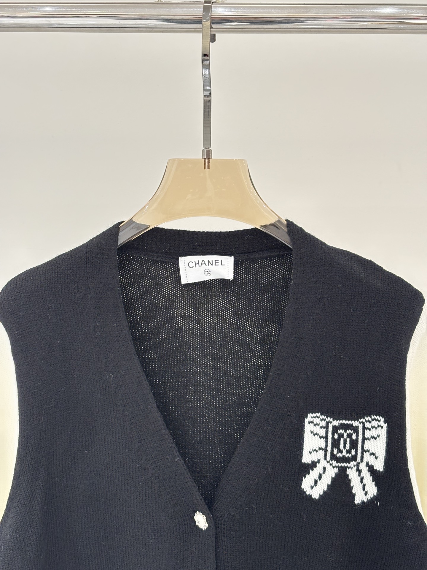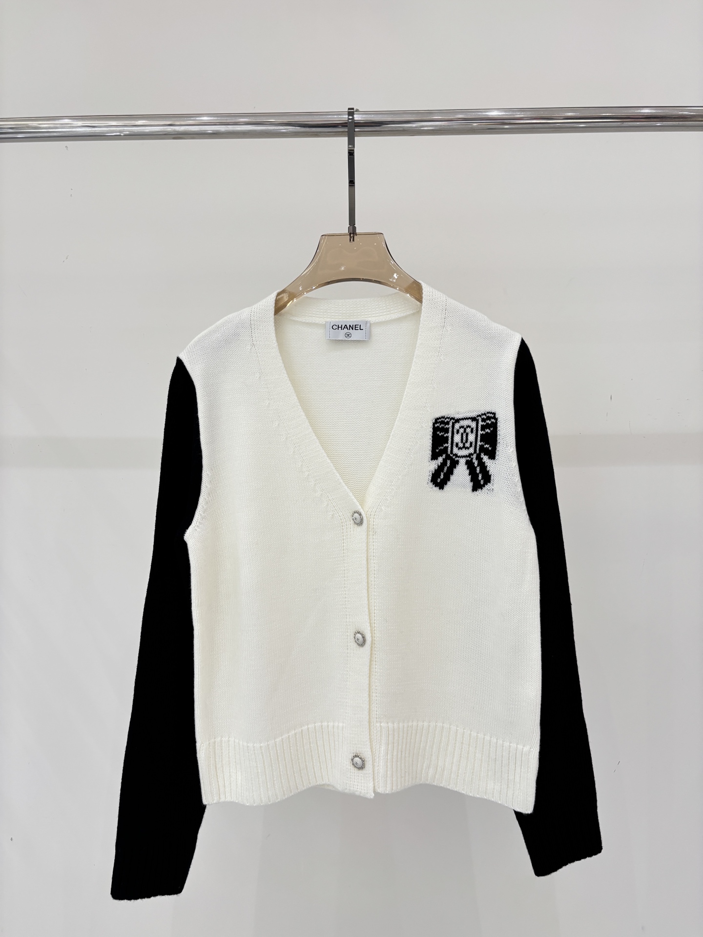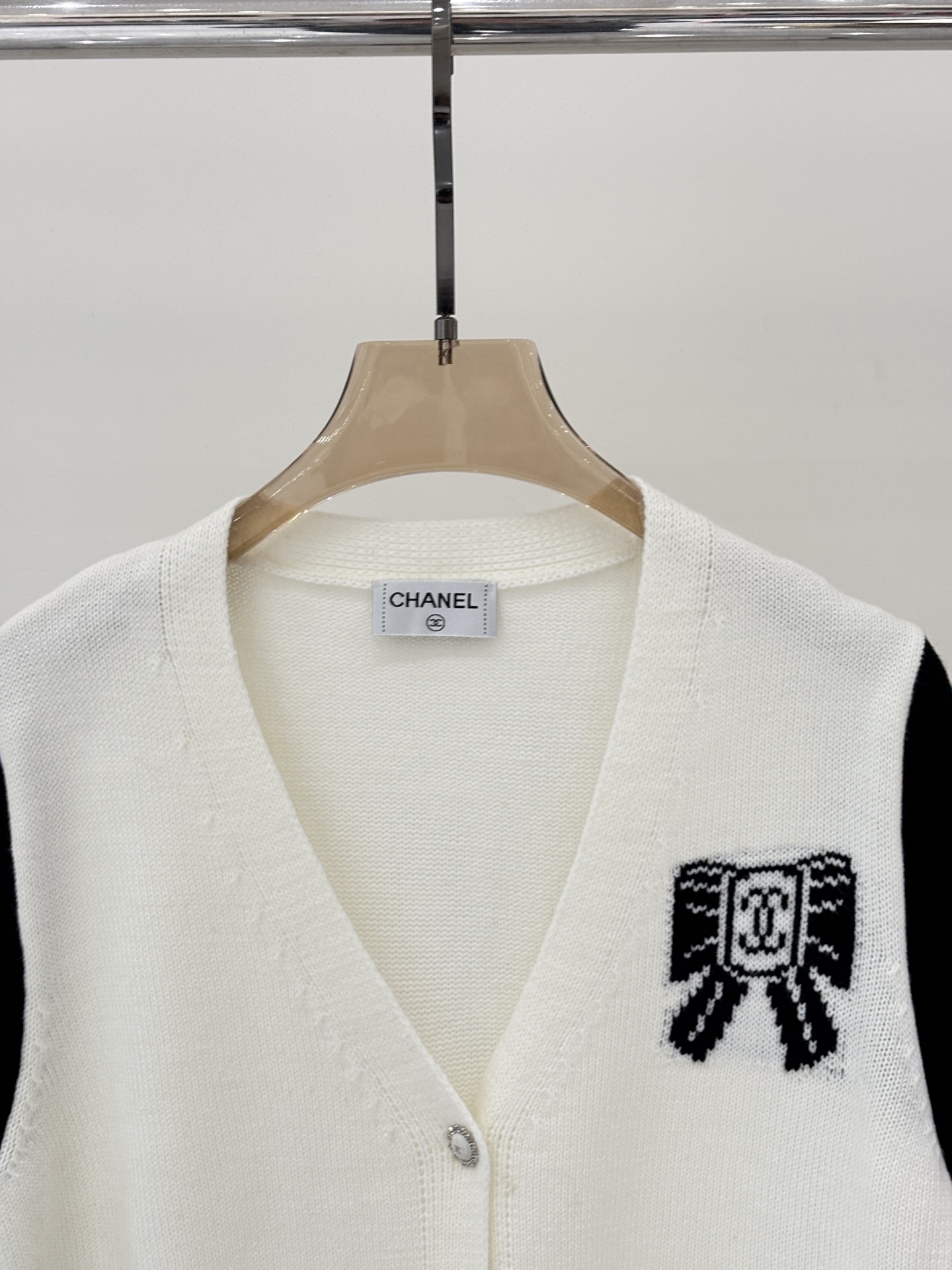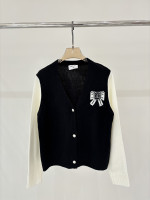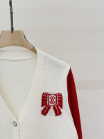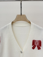 샤넬 브이넥 레터로고 리본 가디건