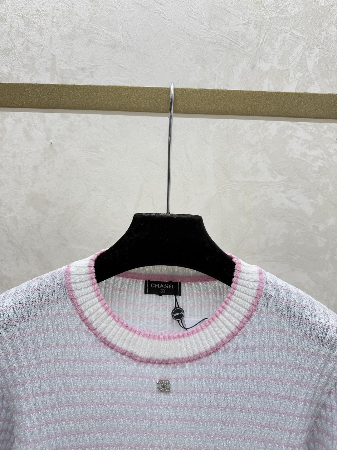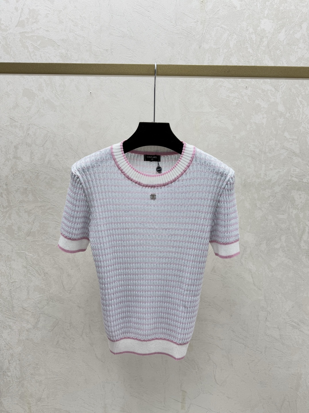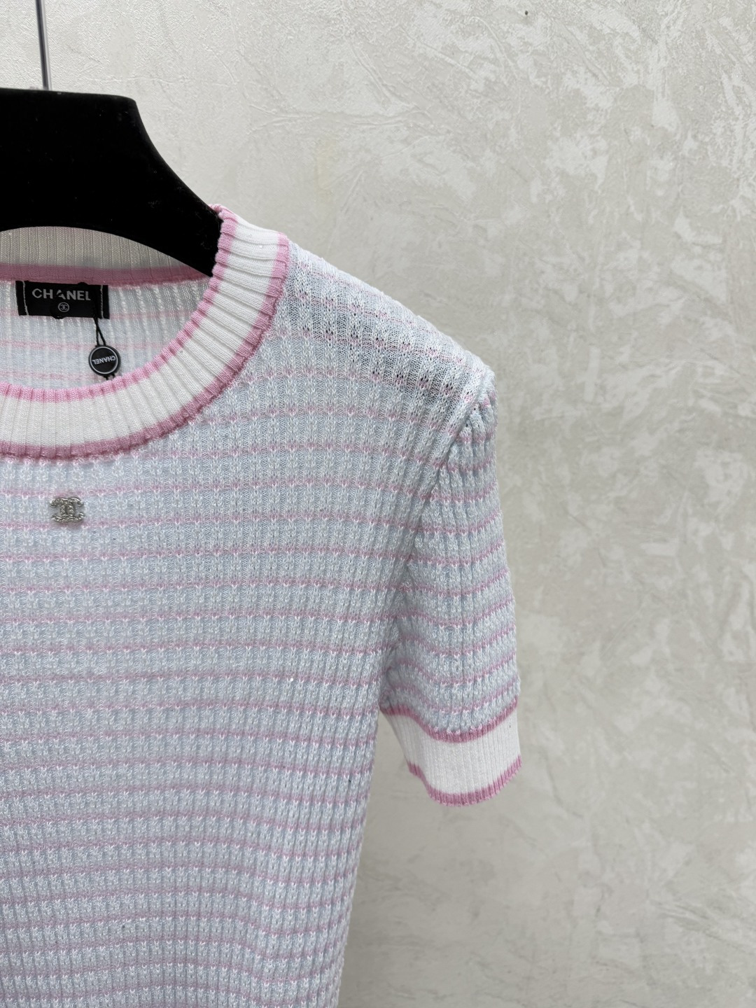 샤넬 스트라이프 라운드넥 니트 반팔