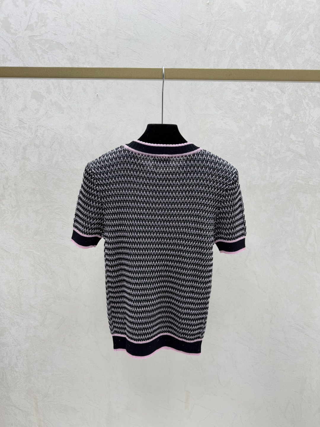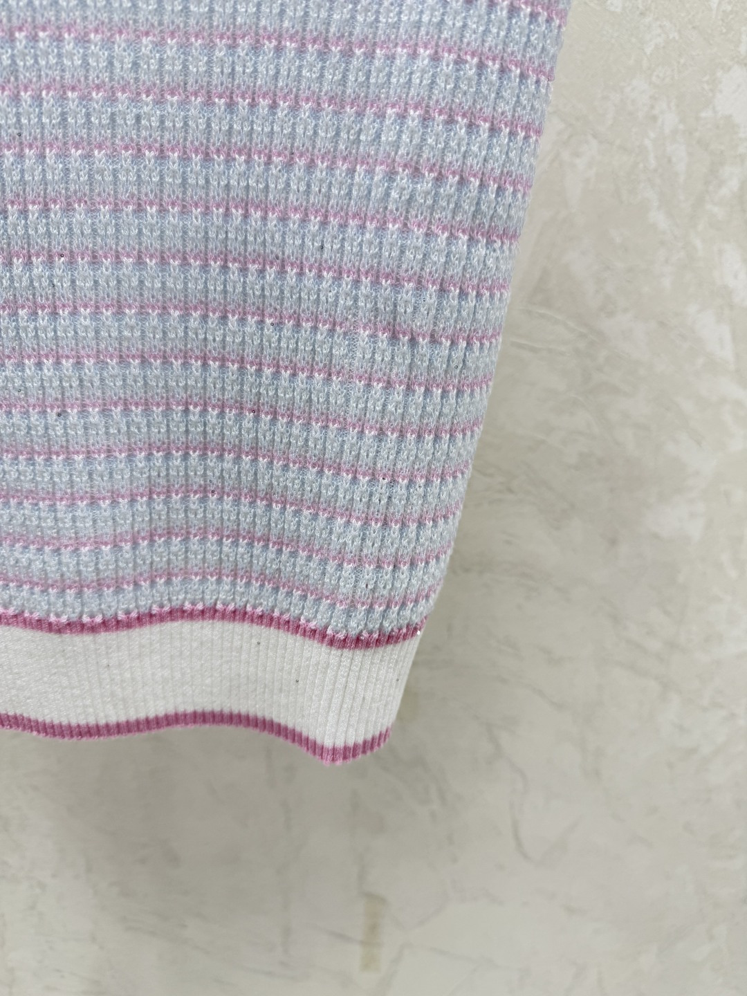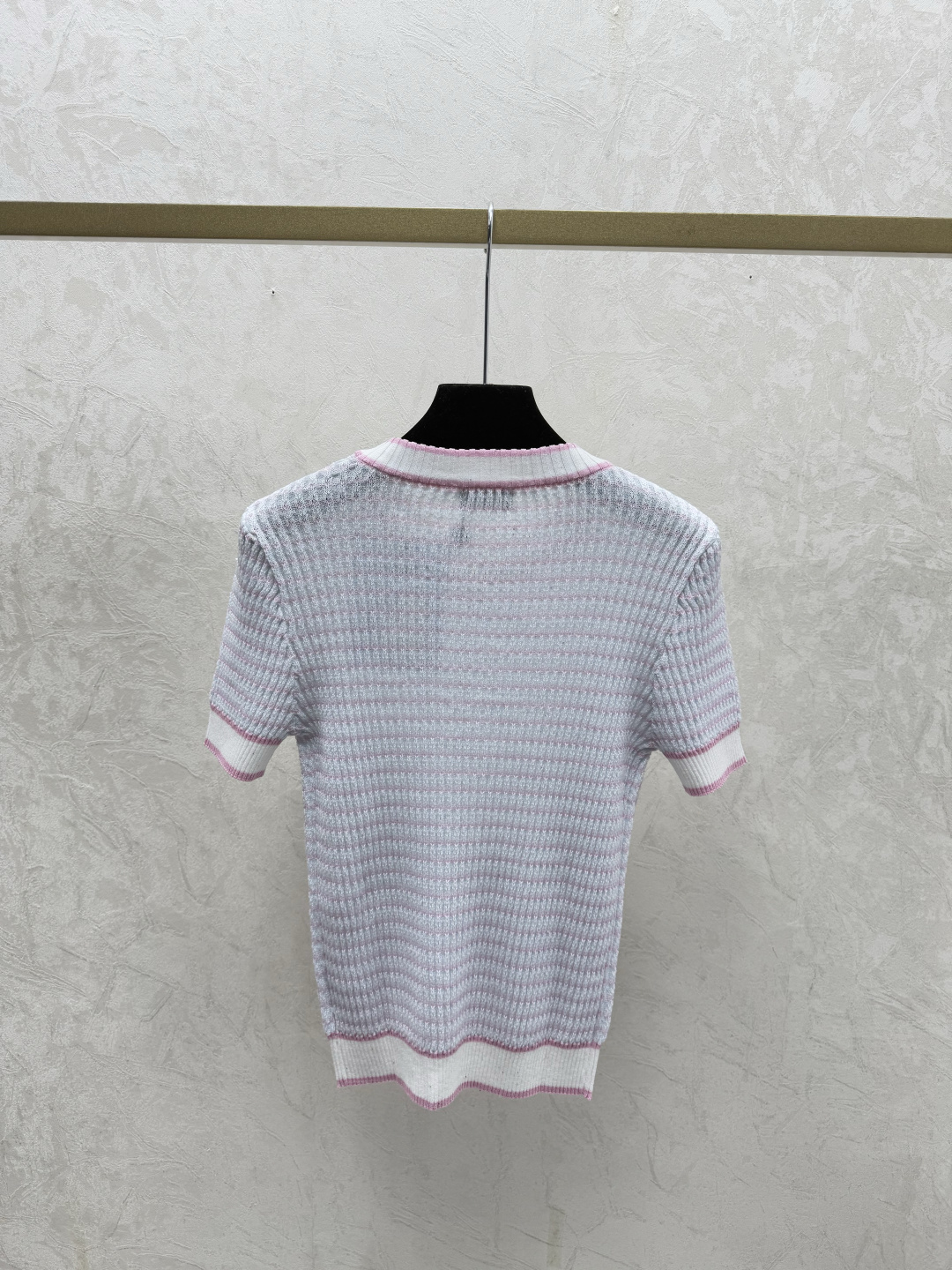 샤넬 스트라이프 라운드넥 니트 반팔