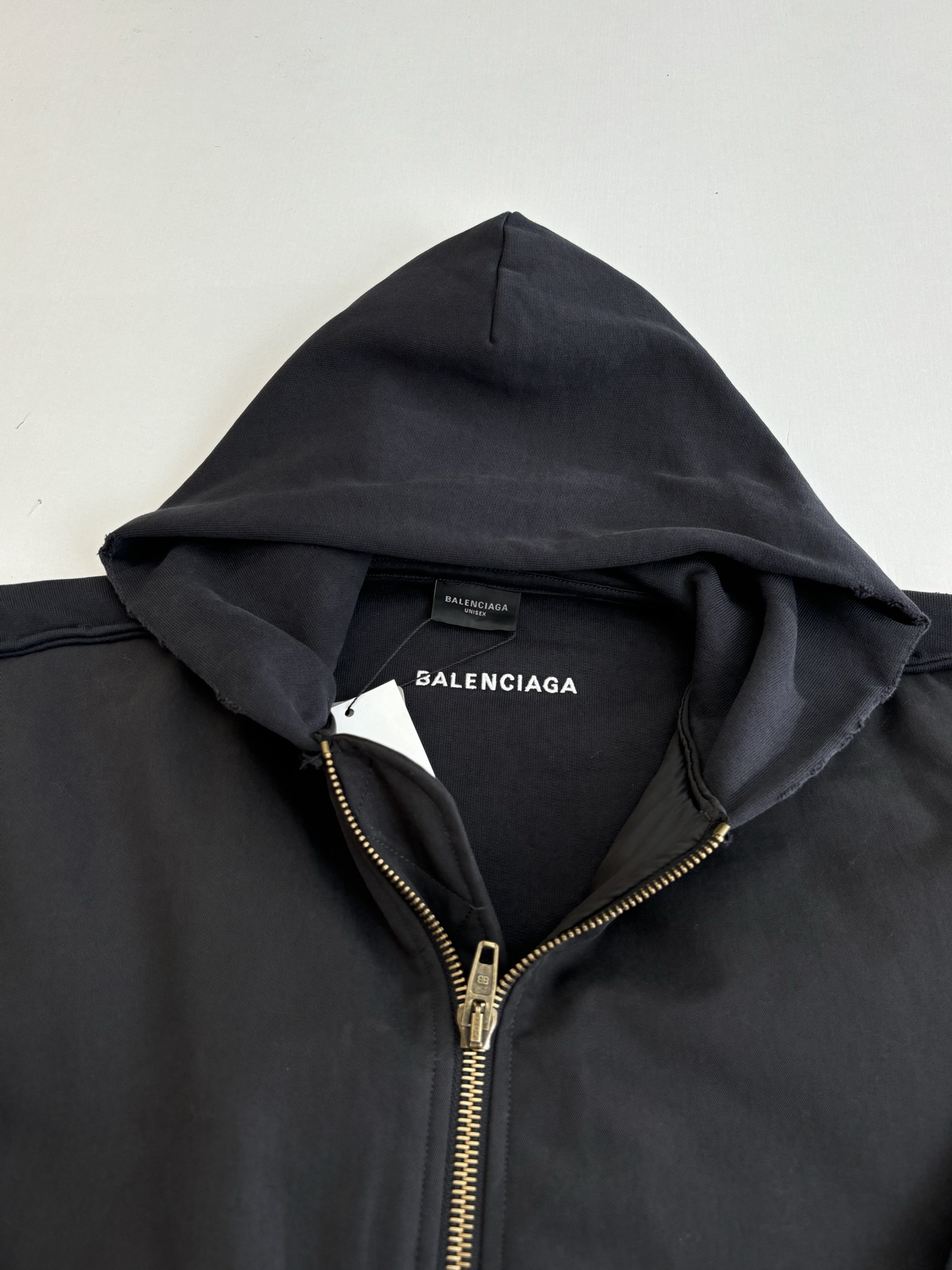 발렌시아가 디스트레스드 워싱 후드 스웨트 셔츠