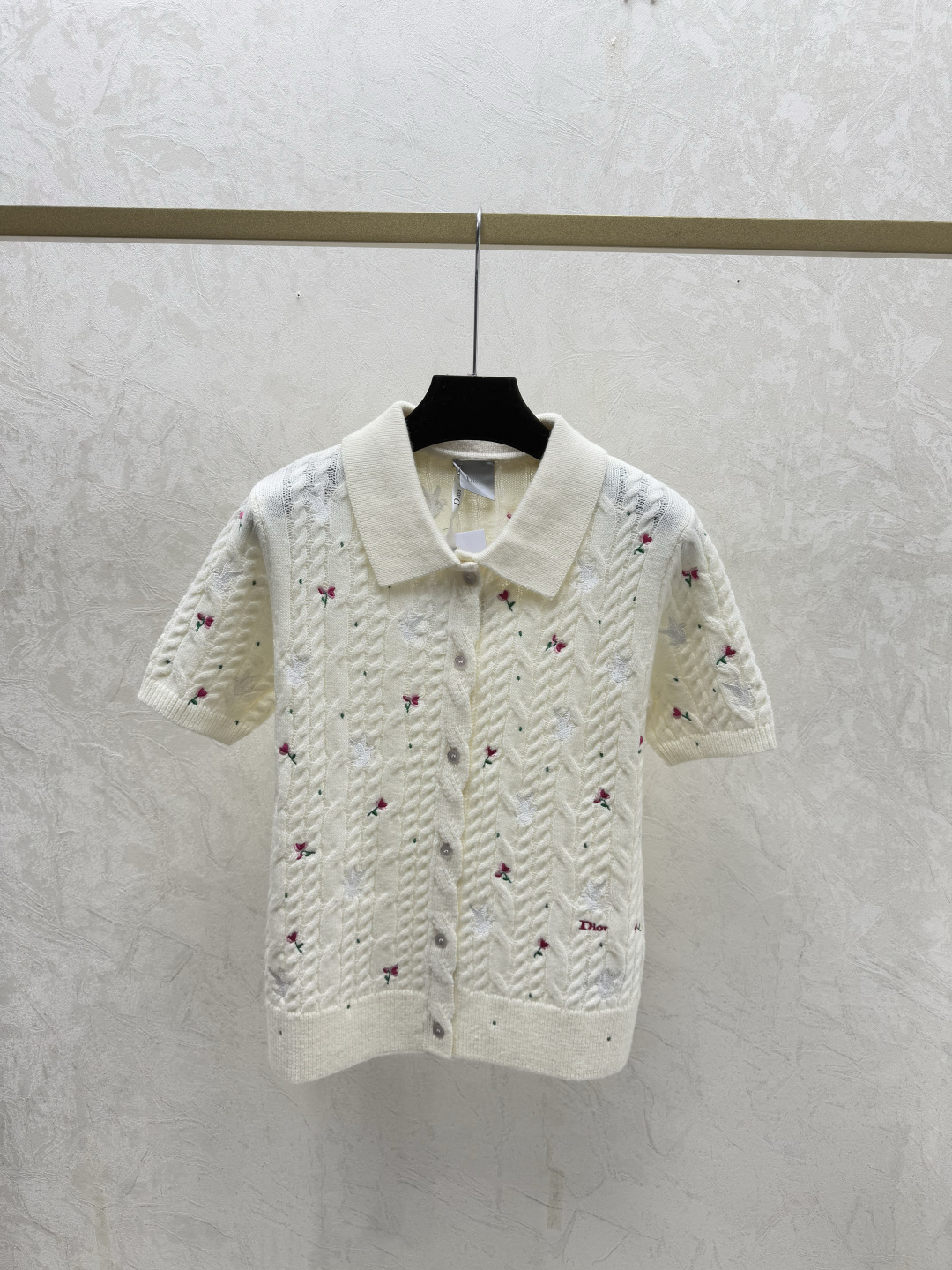 디올 꽃무늬 라펠 니트반팔
