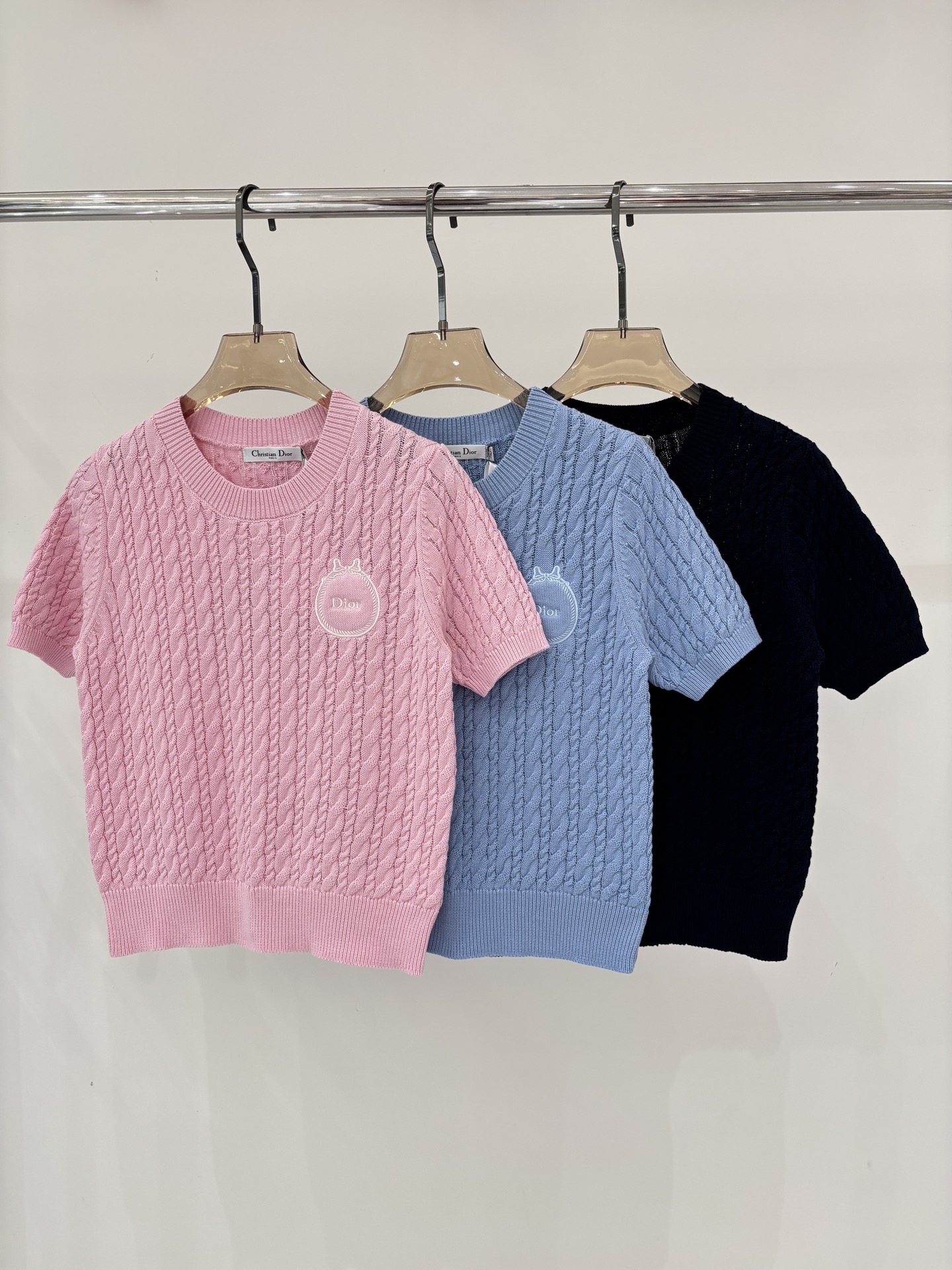 디올 라운드넥 별꽃 니트 반팔