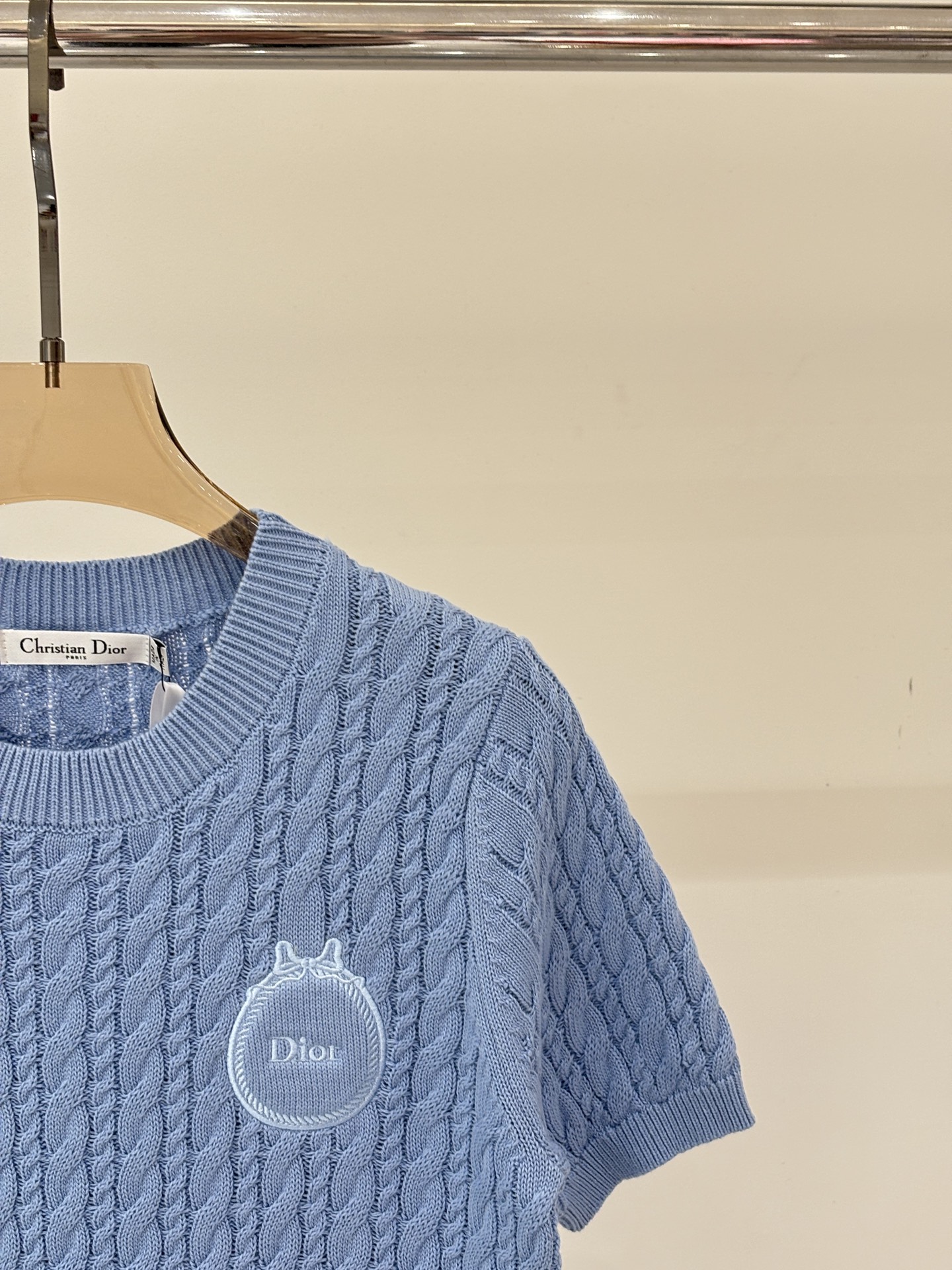디올 라운드넥 로고 리본 니트 > 여성의류