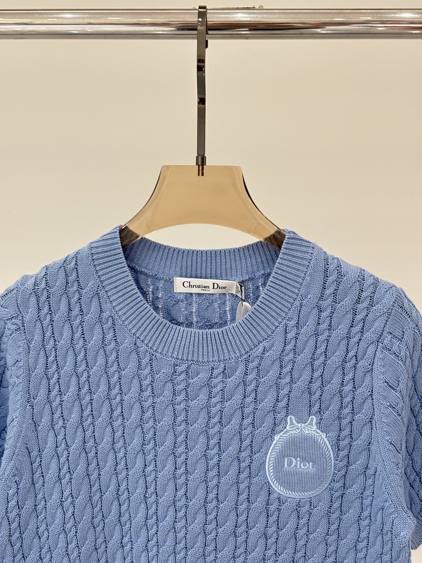 디올 라운드넥 로고 리본 니트