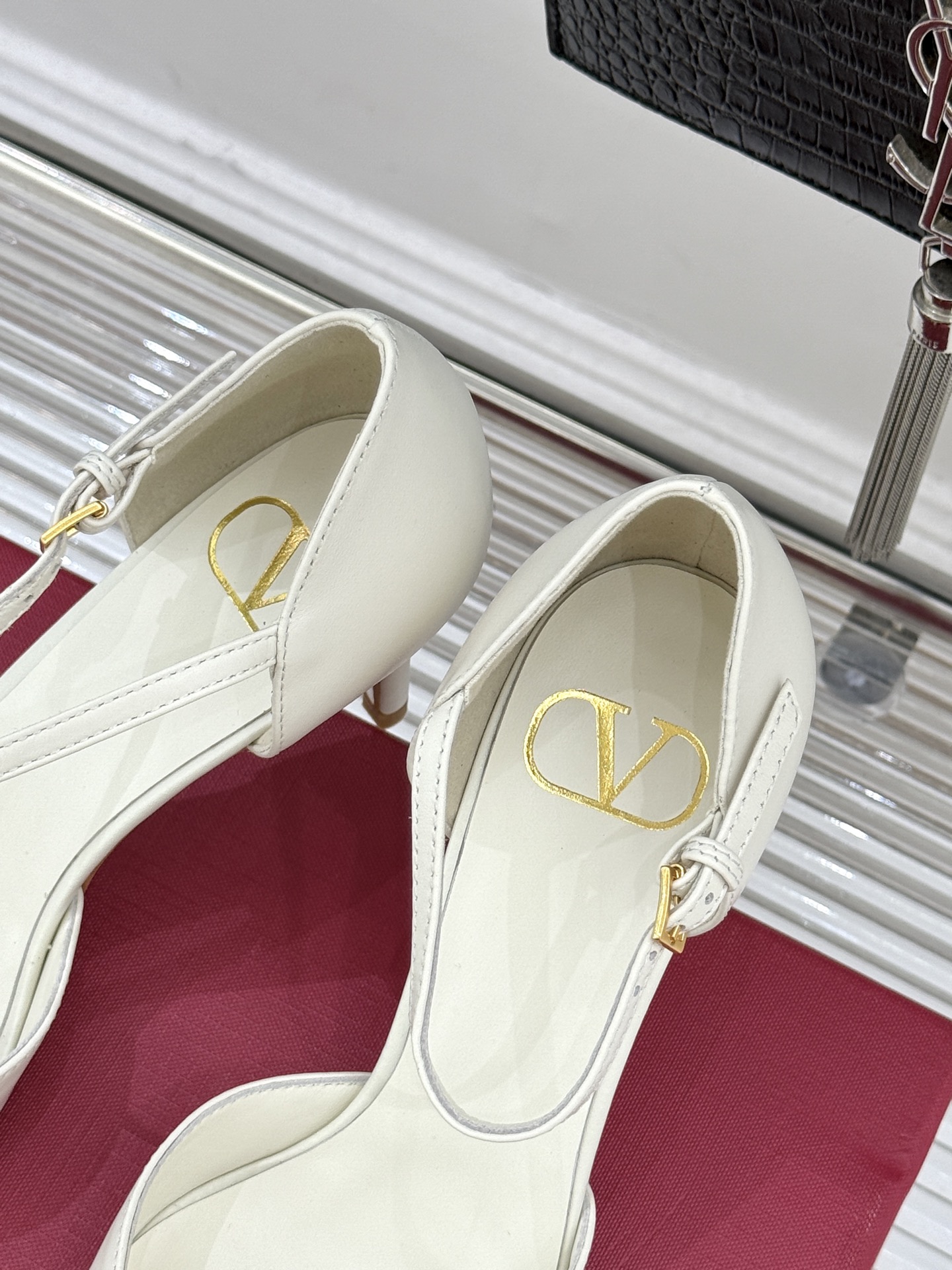 발렌티노 빅V버클 포인티드 토 하이힐