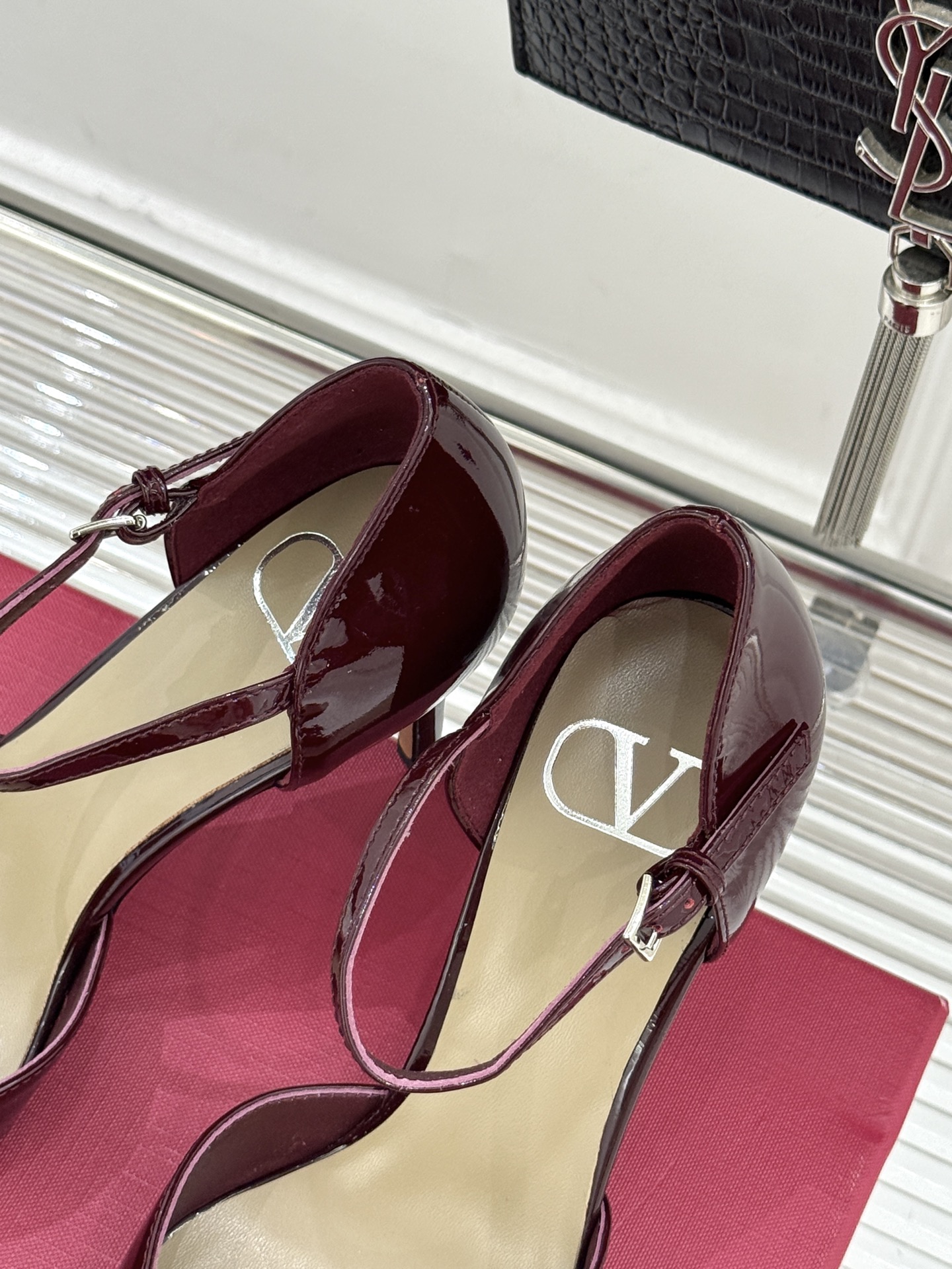 발렌티노 빅V버클 포인티드 토 하이힐